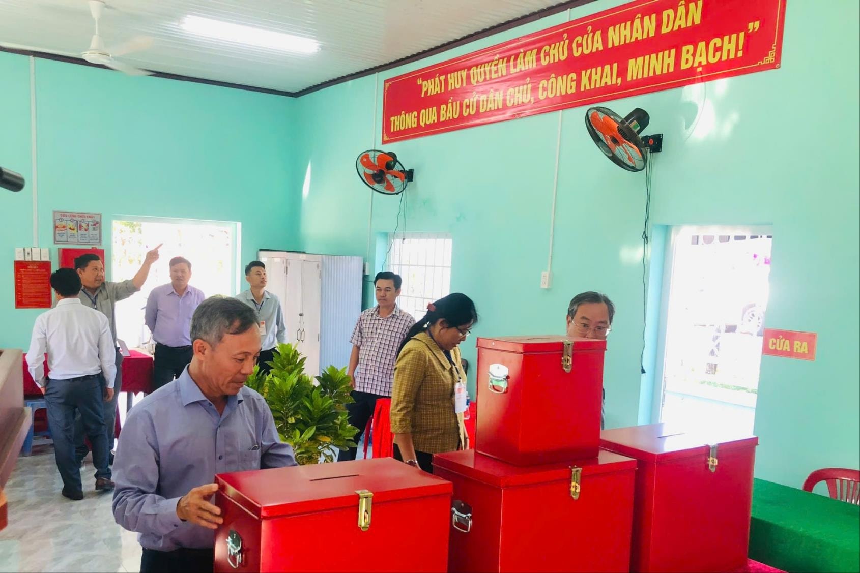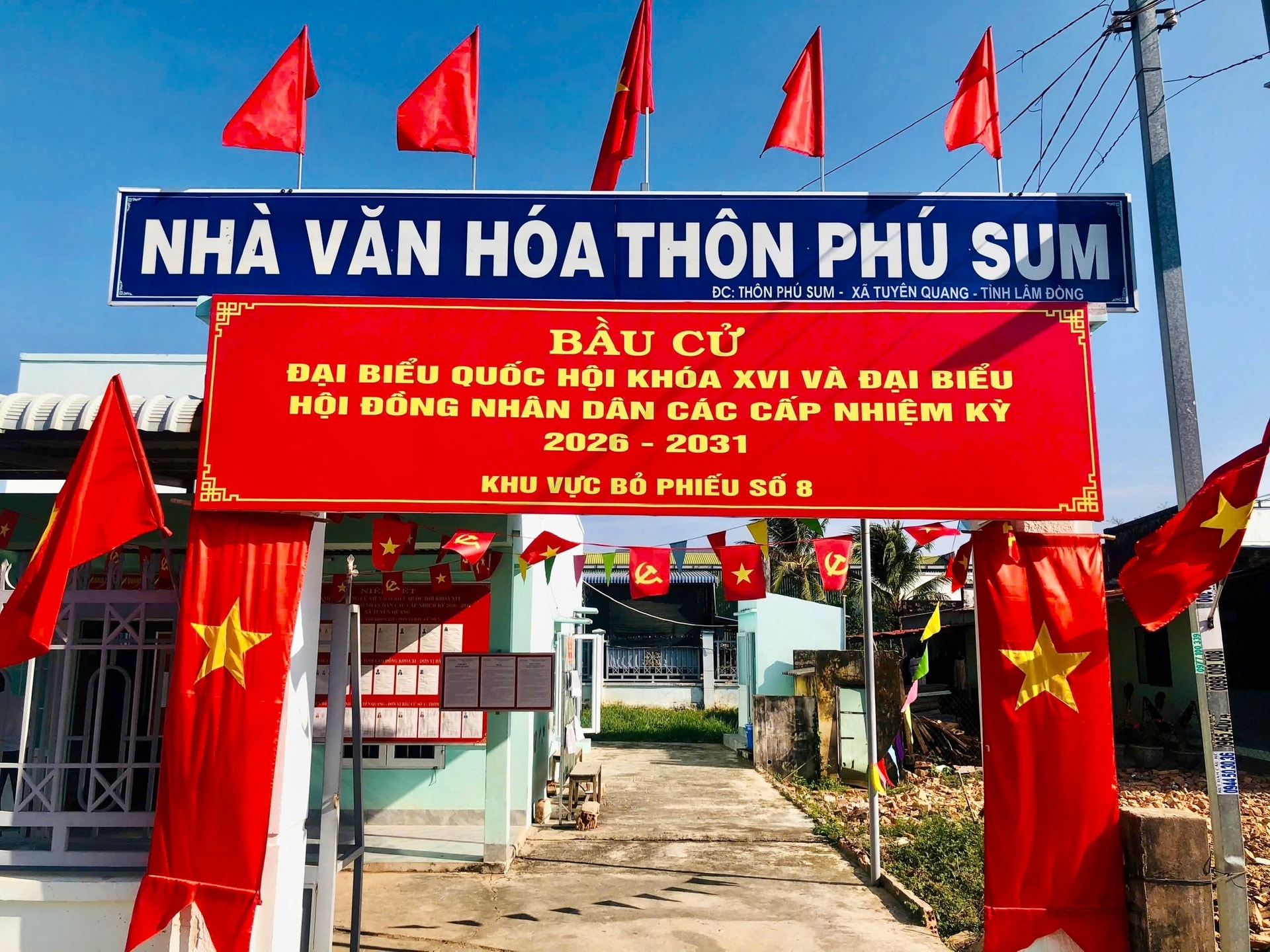 Khu vực bỏ phiếu số 8 (thôn Phú Sum) được trang trí rực rỡ