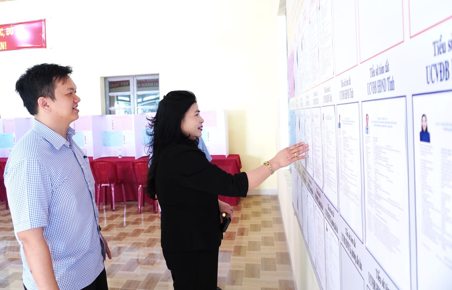 Các đoàn công tác đến kiểm tra tại Khu vực bỏ phiếu số 7 (thôn 10) và Khu vực bỏ phiếu số 21 (thôn Hiền Lương). Theo báo cáo, công tác chuẩn bị bầu cử được địa phương thực hiện nghiên túc, đúng tiến độ, đúng quy định, văn bản hướng dẫn của cấp trên. Toàn xã có 23 khu vực bỏ phiếu, với 40.835 cử tri.