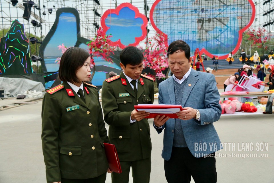 Tại buổi kiểm tra, các thành viên Ban Tổ chức đã kiểm tra thực tế tại nhiều khu vực gồm: khu vực sân khấu phục vụ chương trình nghệ thuật khai mạc Lễ hội hoa Đào xứ Lạng năm 2026 tại đường Hùng Vương, phường Lương Văn Tri; khu vực thiết kế, thi công đường hoa xuân; khu vực trận địa bắn pháo hoa; đồng thời rà soát công tác bảo đảm an ninh, trật tự, phòng cháy, chữa cháy, phân luồng giao thông và vệ sinh môi trường tại các địa điểm diễn ra sự kiện khai mạc.