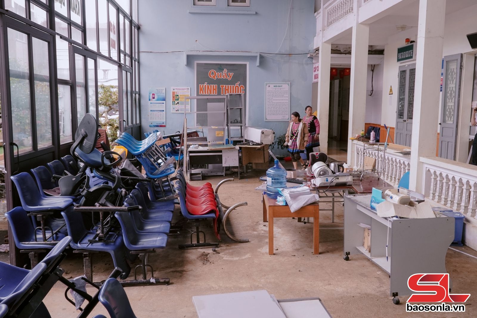 Trận lũ đã gây hư hỏng nhiều trang thiết bị của Bệnh viện Đa khoa khu vực Vân Hồ - cơ sở Thảo Nguyên