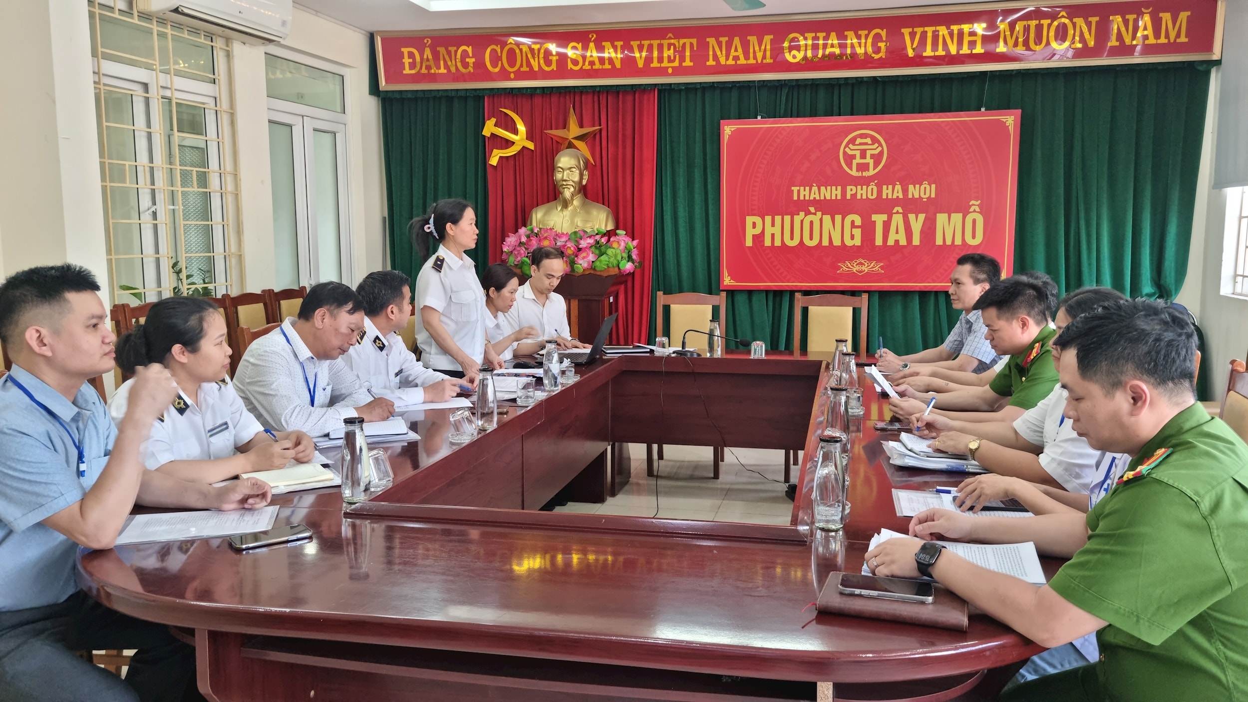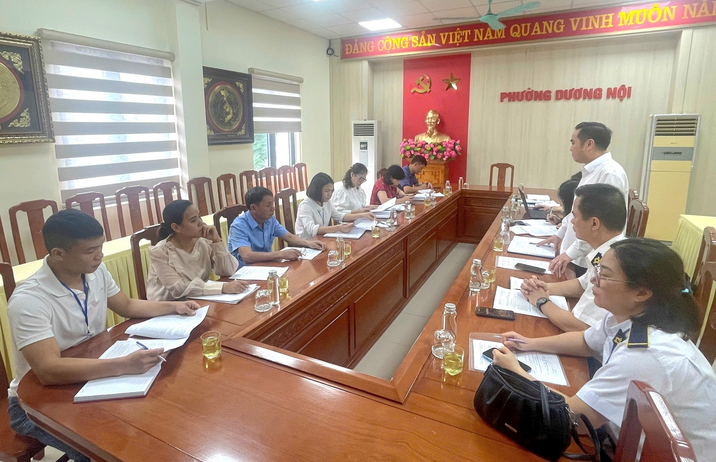 Đoàn kiểm tra số 02 của Sở Nông nghiệp và Môi trường Hà Nội làm việc với UBND phường Dương Nội, Tây Mỗ. Ảnh: Ánh Dương