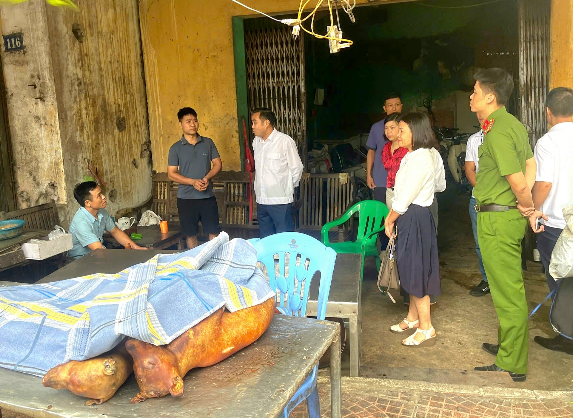 Đoàn công tác kiểm tra việc giết mổ chó, mèo trên địa bàn phường Dương Nội. Ảnh: Trung Nguyên