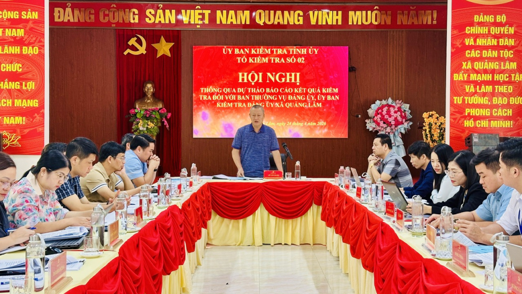 Đoàn công tác làm việc với Chi bộ Trường Phổ thông Dân tộc bán trú THCS Quảng Lâm và Chi bộ UBND xã. Tổ kiểm tra thông qua các dự thảo báo cáo, gồm: Kết quả kiểm tra tài chính Đảng đối với Đảng ủy xã; kết quả kiểm tra việc thực hiện nhiệm vụ kiểm tra, giám sát đối với Ban Thường vụ và Ủy ban Kiểm tra Đảng ủy xã; kết quả kiểm tra việc thi hành kỷ luật trong Đảng đối với Đảng ủy xã.