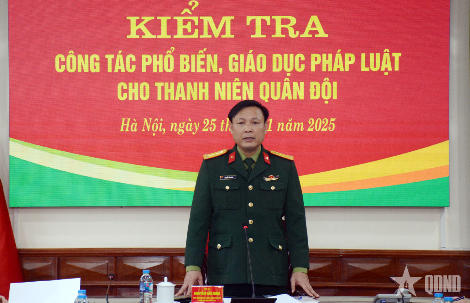 Đại tá Nguyễn Văn Ninh, Phó trưởng ban Thanh niên Quân đội phát biểu kết luận sơ bộ kiểm tra.