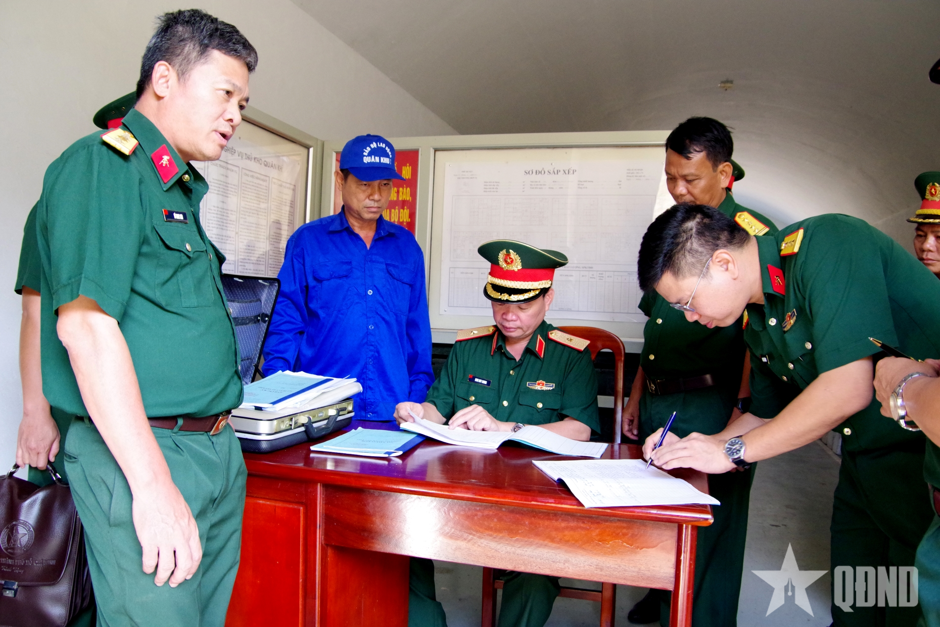 Thiếu tướng Đinh Huy Chung kiểm tra hệ thống sổ sách, hồ sơ quản lý kho, trạm.