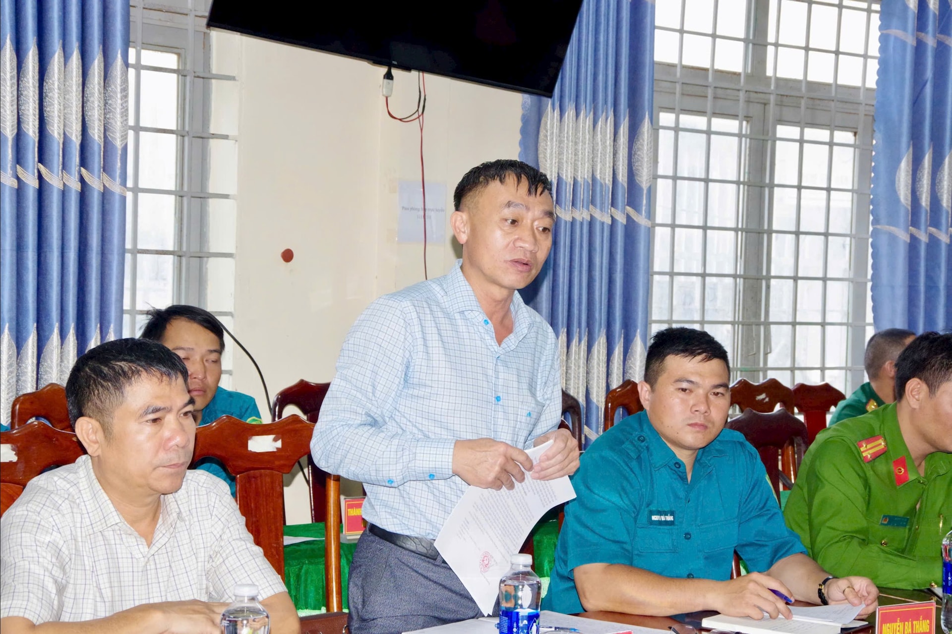 Ông Đoàn Văn Phương, Chủ tịch UBND xã, Chủ tịch Hội đồng NVQS xã Quảng Sơn báo cáo một số nội dung phục vụ Đoàn kiểm tra