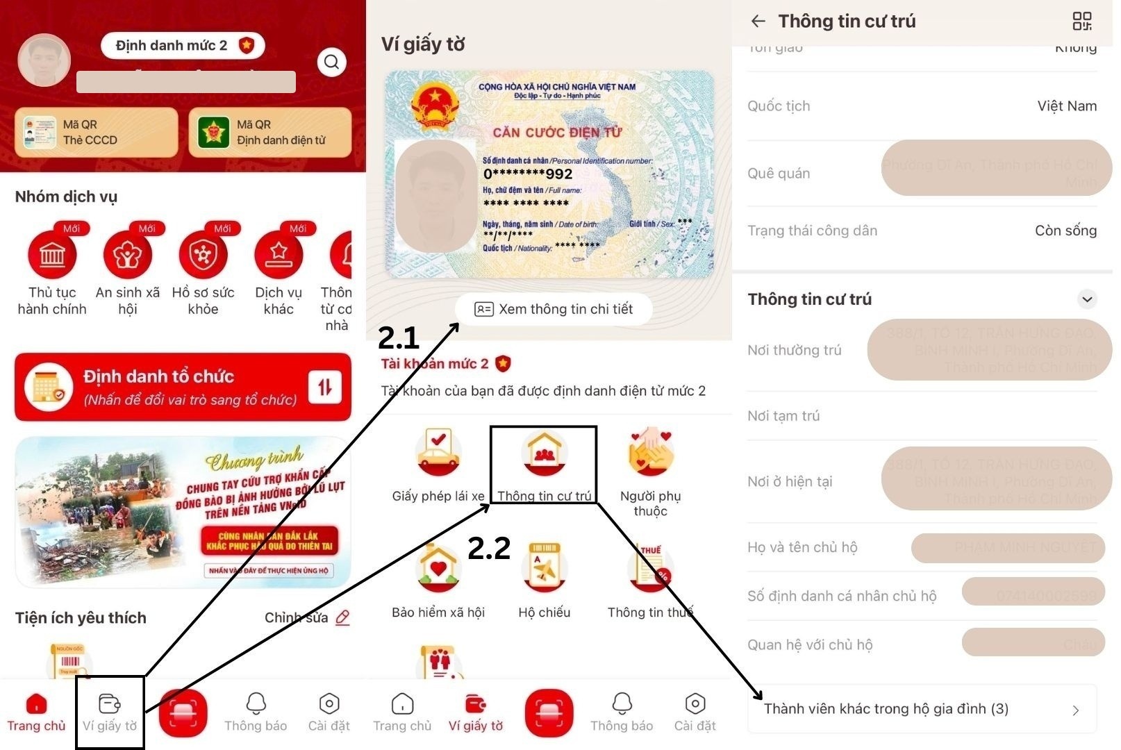 Thông tin cư trú nằm trong mục Ví giấy tờ.