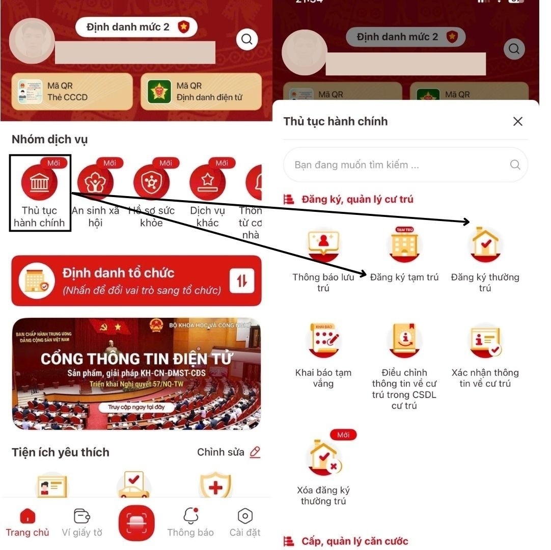Hướng dẫn đăng ký thường trú, tạm trú trên VNeID