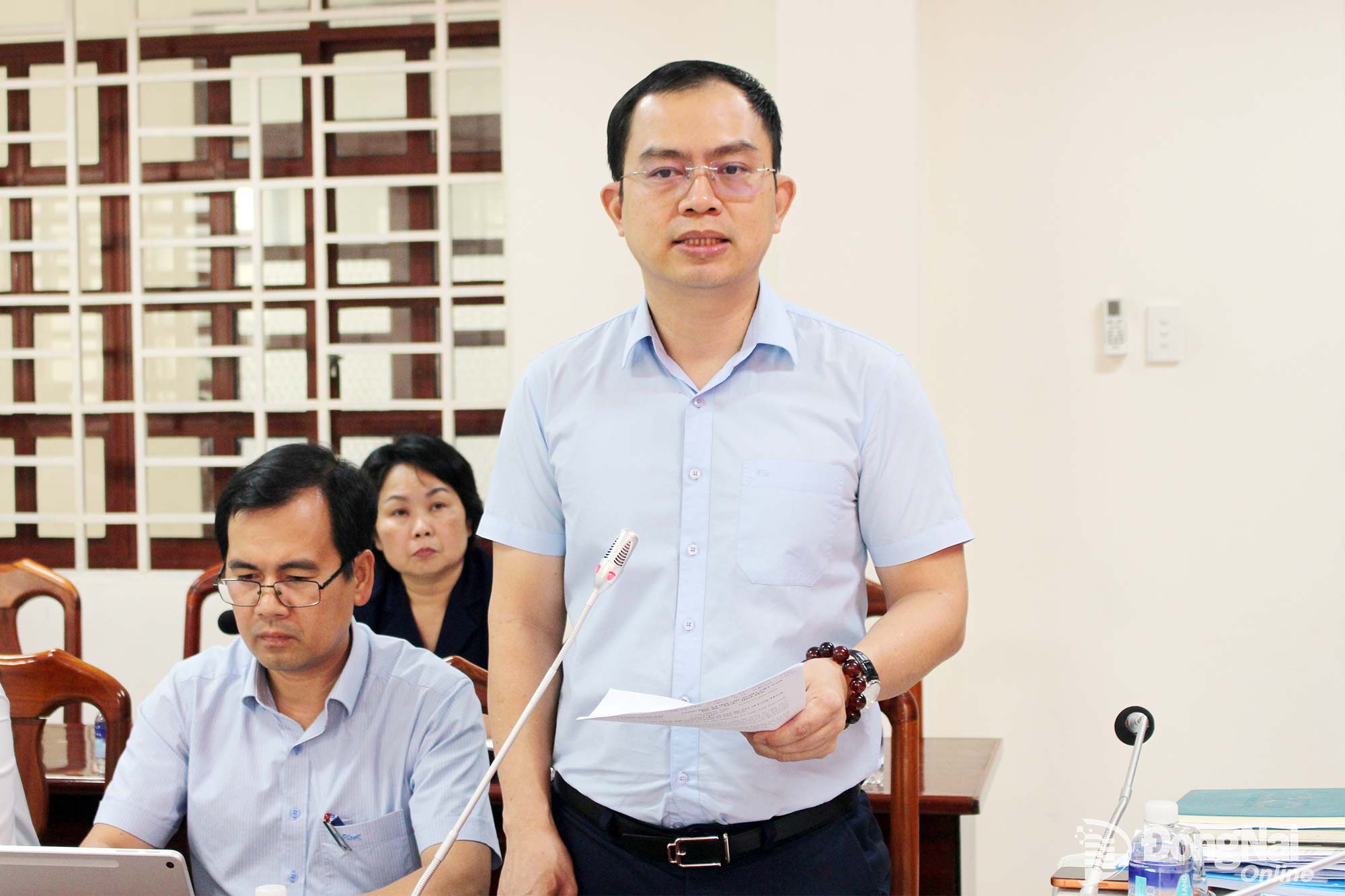 Phó Bí thư Đảng ủy, Chủ tịch UBND xã Long Thành Lê Hoàng Sơn phát biểu tại buổi làm việc. Ảnh: Hồ Thảo
