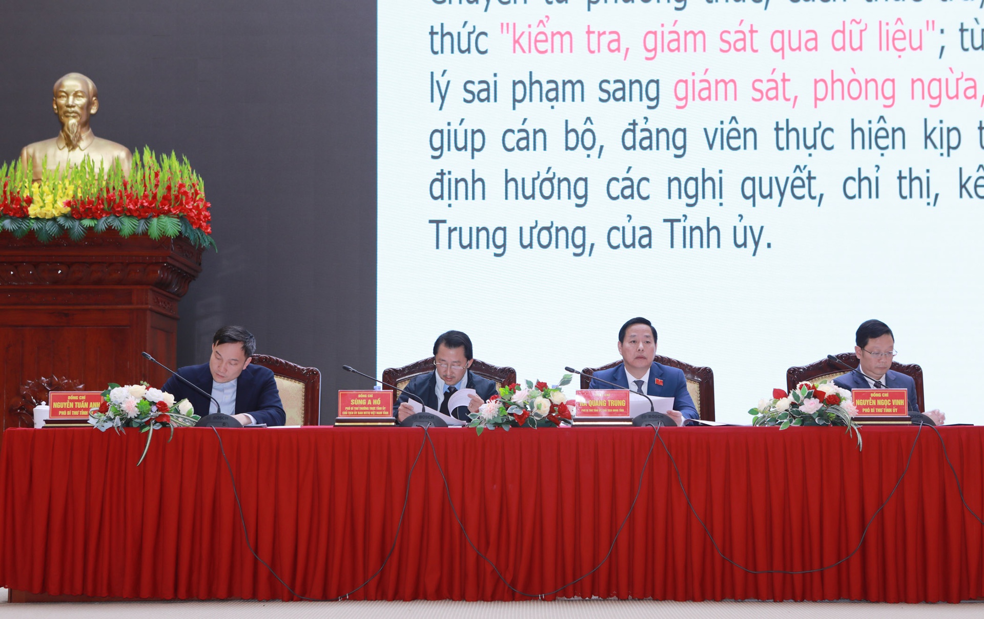 Đề cao tinh thần tự giác, tự phê bình và phê bình, tự kiểm tra, tự giám sát và giám sát thường xuyên trong từng tổ chức đảng, đảng viên; chuyển trọng tâm công tác kiểm tra, giám sát từ thụ động sang chủ động, không để có “khoảng trống”, “vùng tối” nằm ngoài phạm vi kiểm tra, giám sát; chuyển từ phương thức, cách thức truyền thống sang phương thức “Kiểm tra, giám sát qua dữ liệu”; từ kiểm tra, phát hiện, xử lý sai phạm sang giám sát, phòng ngừa, cảnh báo, định hướng giúp cán bộ, đảng viên thực hiện kịp thời, có hiệu quả, đúng định hướng các nghị quyết, chỉ thị, kết luận, hướng dẫn của Trung ương và của Tỉnh ủy.