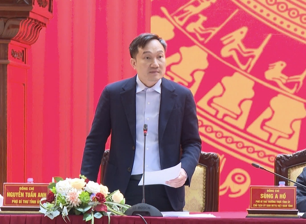 Phó Bí thư Tỉnh ủy Nguyễn Tuấn Anh phát biểu tại hội nghị.