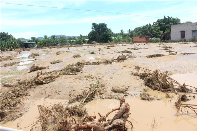 Nước lũ do vỡ hồ chứa từ trên núi ập xuống gây nhiều thiệt hại cho người dân khu vực thôn 2, xã Tuy Phong.