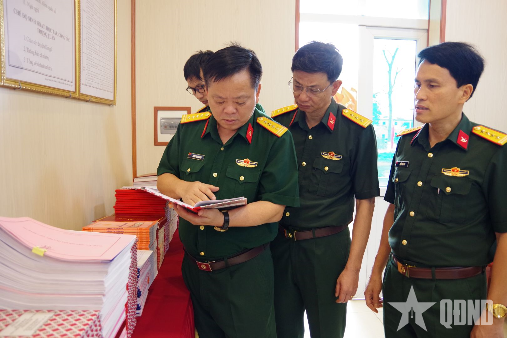 Tiếp đó, đoàn công tác đã trực tiếp kiểm tra tại các khu vực trong đơn vị, tập trung vào các nội dung: Hệ thống biển bảng, pa-nô, khẩu hiệu tuyên truyền; hệ thống sổ sách công tác tuyên huấn; việc duy trì, khai thác phòng đọc, phòng Hồ Chí Minh; đồng thời kiểm tra việc triển khai nội dung chuyển đổi số trong công tác quản lý, cập nhật hồ sơ trên nền tảng điều hành. Cùng với đó, đoàn cũng trao đổi, nắm bắt nhận thức chính trị, tư tưởng của cán bộ, chiến sĩ.