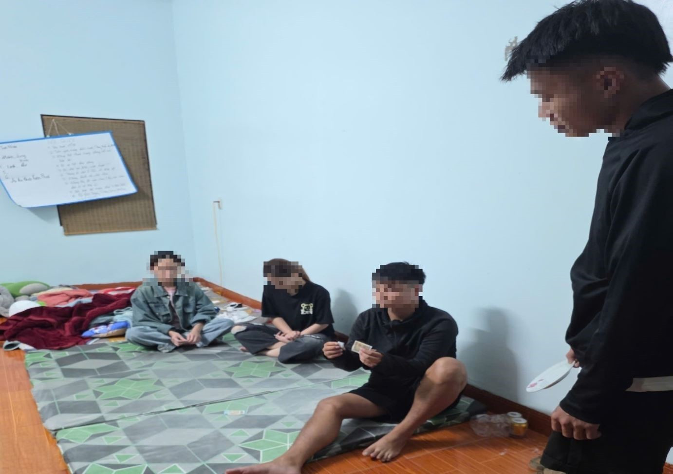 Quá trình kiểm tra, công an phát hiện có tổng số 7 người (3 nam, 4 nữ). Tổ công tác đã tiến hành test nhanh chất ma túy, kết quả 5/7 trường hợp dương tính với chất ma túy.