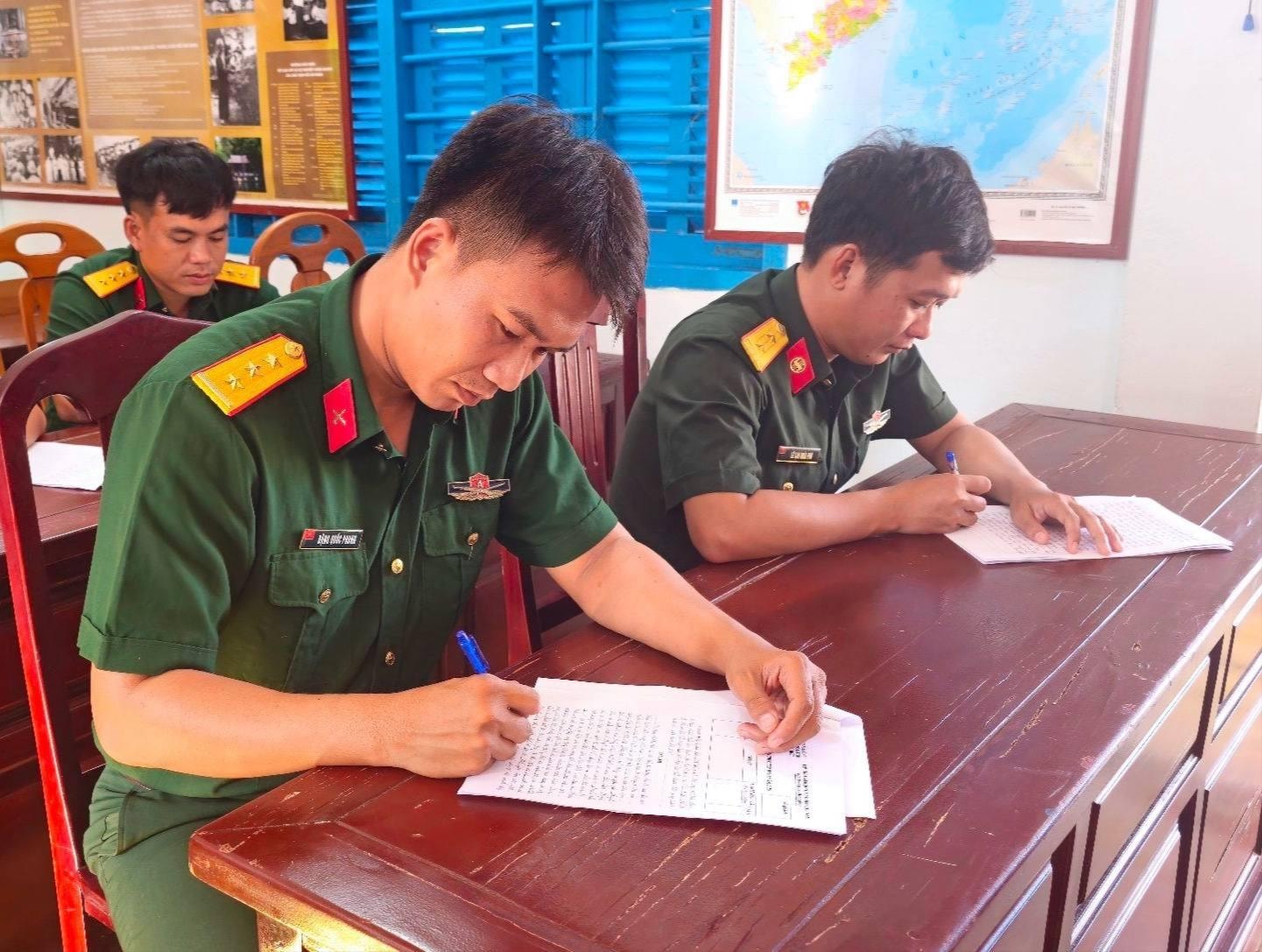 Quân nhân ở Đặc khu Phú Quý tham gia kiểm tra về nhận thức chính trị