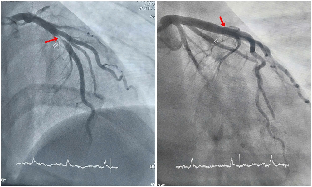 Kết quả chụp mạch vành cho thấy động mạch liên thất trước – một trong những nhánh quan trọng nhất nuôi dưỡng cơ tim bị tổn thương nặng, hẹp khít tới 99%. Trước tình huống nguy kịch, các bác sĩ khoa Phẫu thuật và Can thiệp Tim mạch đã nhanh chóng đặt stent nhằm tái thông máu nuôi tim, giúp người bệnh thoát khỏi tình trạng nguy hiểm.