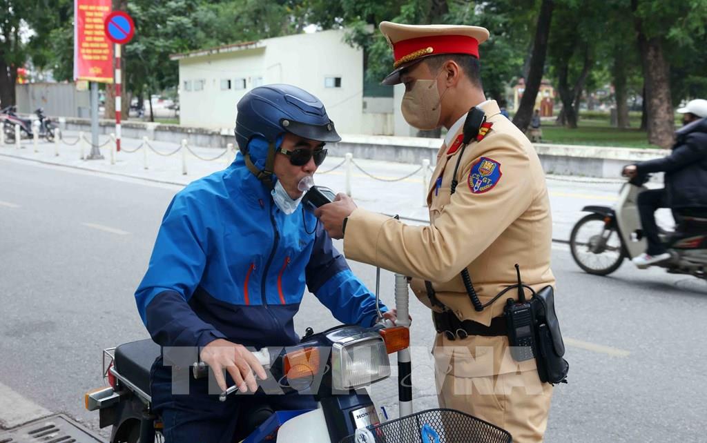 Qua công tác kiểm tra trong 2 ngày đầu nghỉ lễ, lực lượng chức năng đã kiểm soát 14.328 phương tiện, phát hiện, xử lý 342 trường hợp vi phạm nồng độ cồn. Ảnh: Phạm Kiên - TTXVN