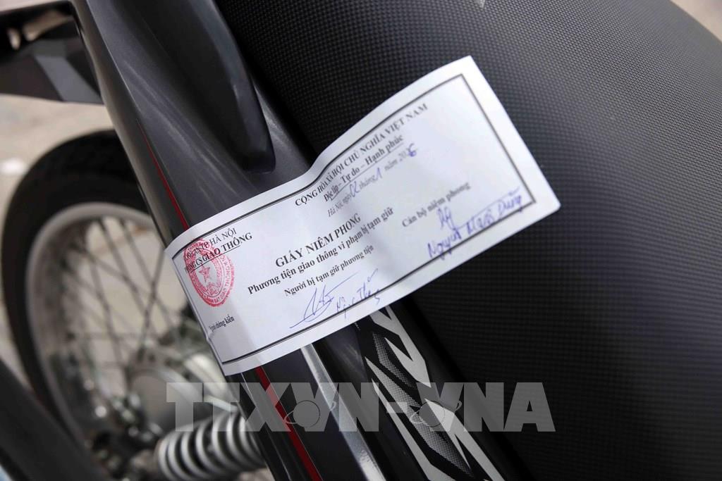Một trường hợp vi phạm nồng độ cồn đã bị tổ công tác lập biên bản xử lý và tạm giữ phương tiện. Ảnh: Phạm Kiên - TTXVN