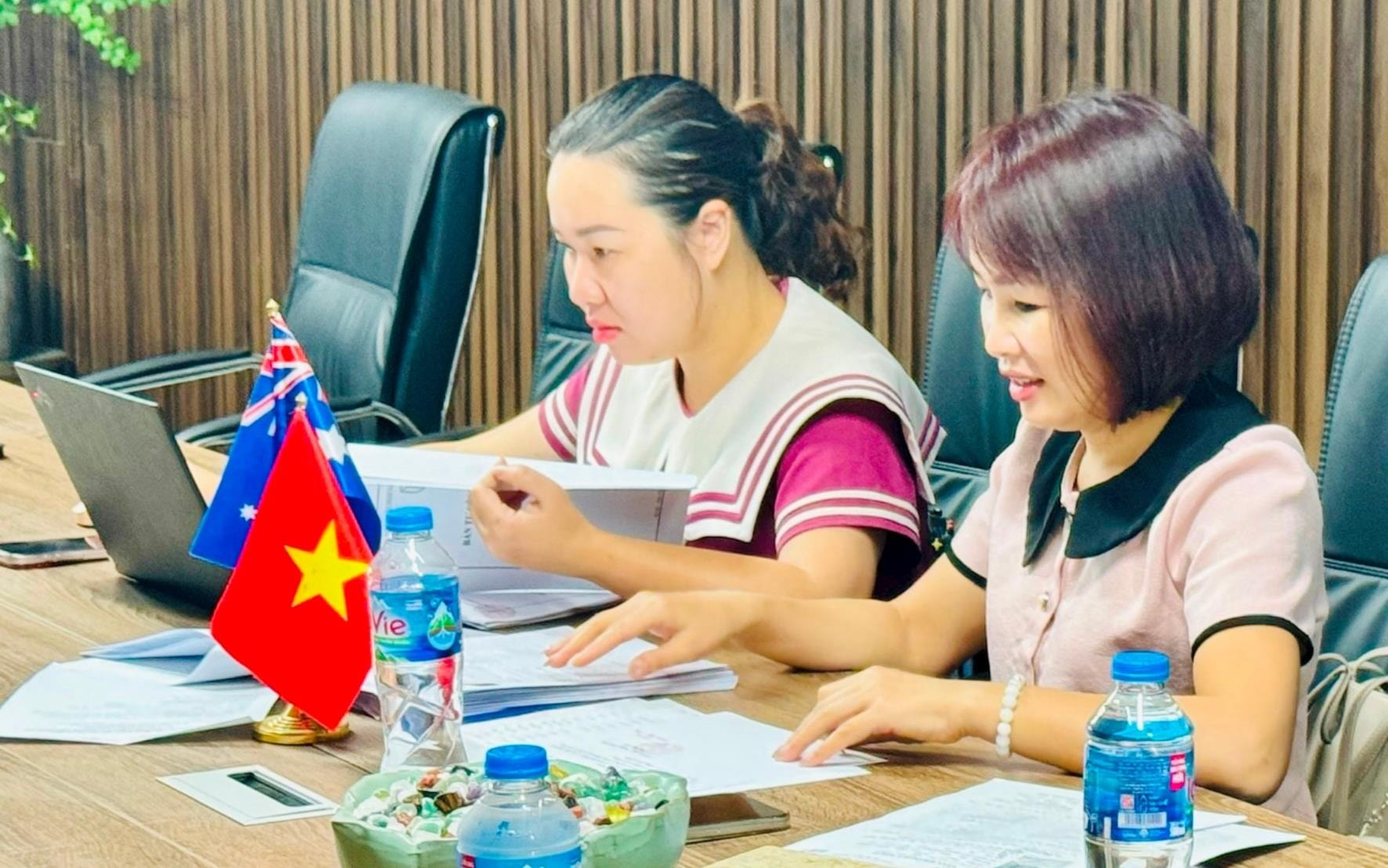 Kiểm tra, đối chiếu hồ sơ pháp lý và thực tế thực hiện quy định về an toàn thực phẩm tại Công ty TNHH Xuất nhập khẩu và thương mại Green Exim. Ảnh: Mai Hoa
