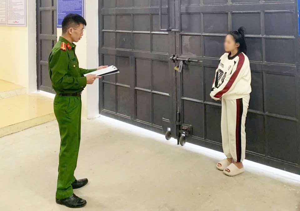 Hình ảnh ĐTV tống đạt các Quyết định đối với Lê Thị Mạo.