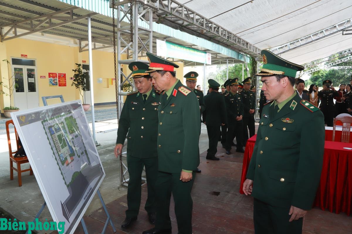 Thượng tướng Nguyễn Trường Thắng kiểm tra phương án xây dựng Trạm y tế hữu nghị xã Hải Sơn. Ảnh: Ngọc Lâm