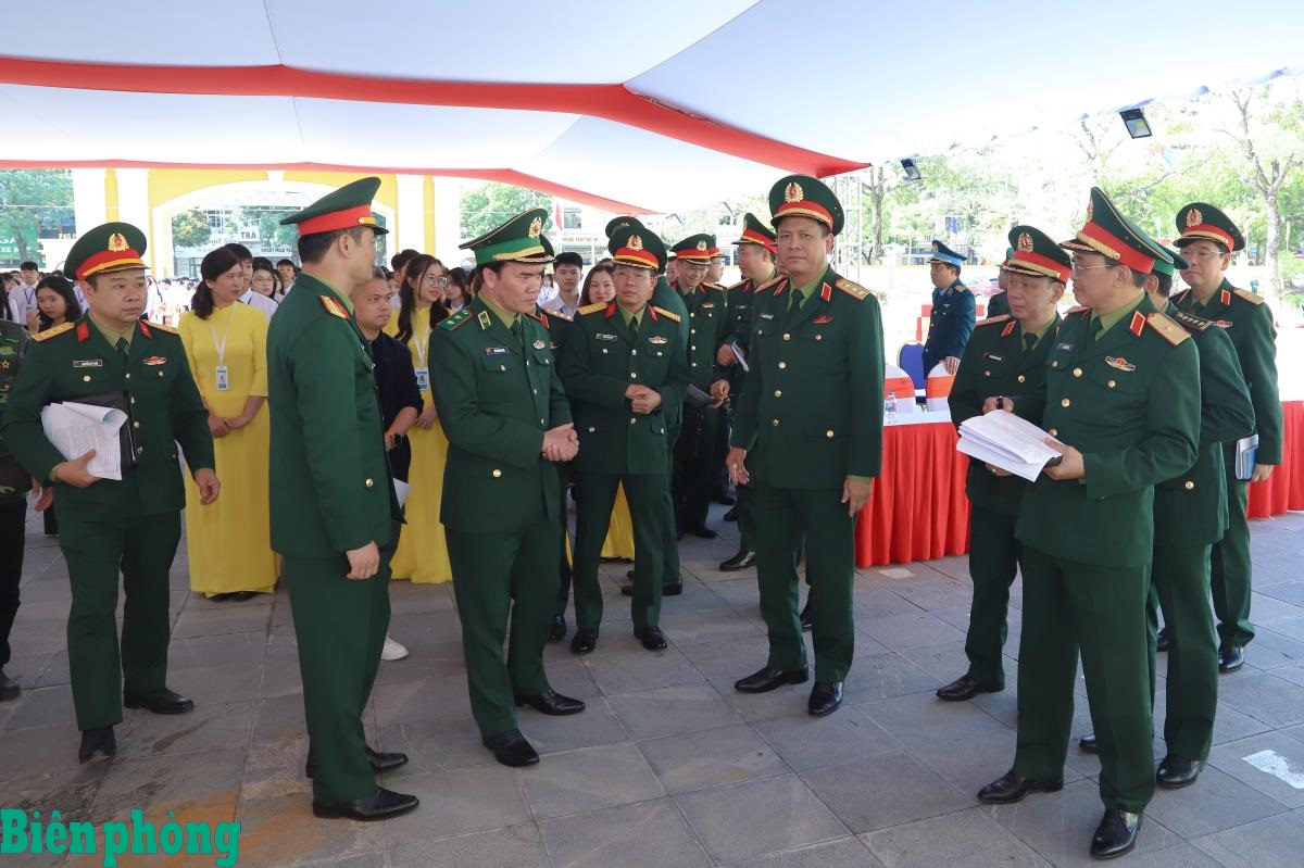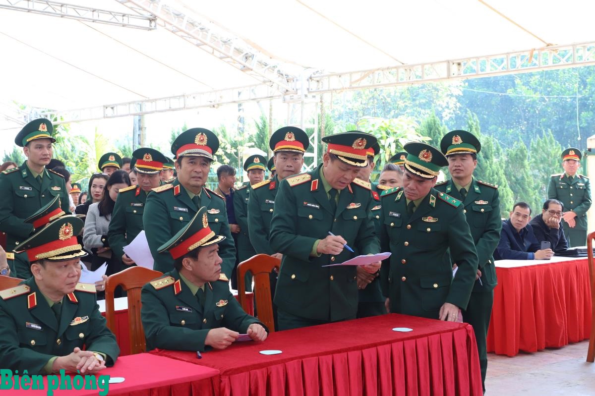 Đoàn kiểm tra công tác đón tiếp đại biểu, điều hành chương trình tại Đồn Biên phòng Trà Cổ. Ảnh: Ngọc Lâm