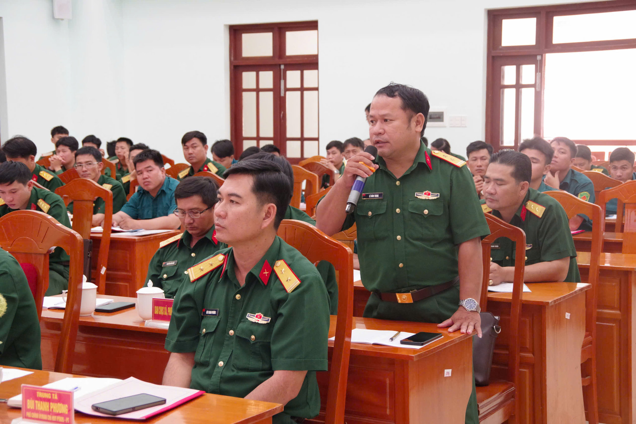 Tại buổi đối thoại, phát huy tinh thần dân chủ, cán bộ, chiến sĩ Ban Chỉ huy Phòng thủ khu vực 5 - Phan Thiết đã sôi nổi, thẳng thắn bày tỏ ý kiến, tâm tư, nguyện vọng, đồng thời đóng góp nhiều ý kiến thiết thực. Nội dung ý kiến chủ yếu liên quan đến khó khăn trong hoạt động của Ban CHQS cấp xã, vướng mắc trong thực hiện nhiệm vụ chuyên môn, cơ sở vật chất ở một số đơn vị chưa bảo đảm…