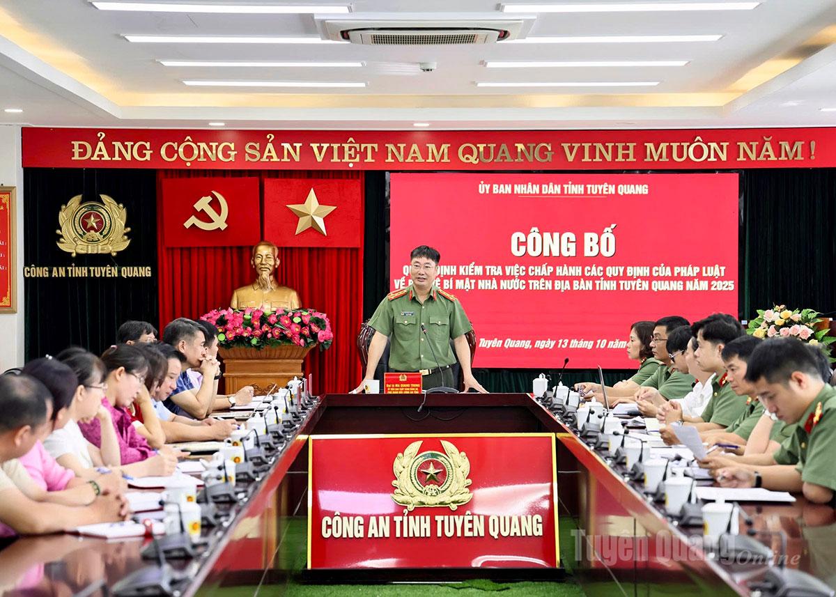 Toàn cảnh Hội nghị công bố quyết định kiểm tra việc chấp hành các quy định của pháp luật về bảo vệ bí mật nhà nước trên địa bàn tỉnh Tuyên Quang.