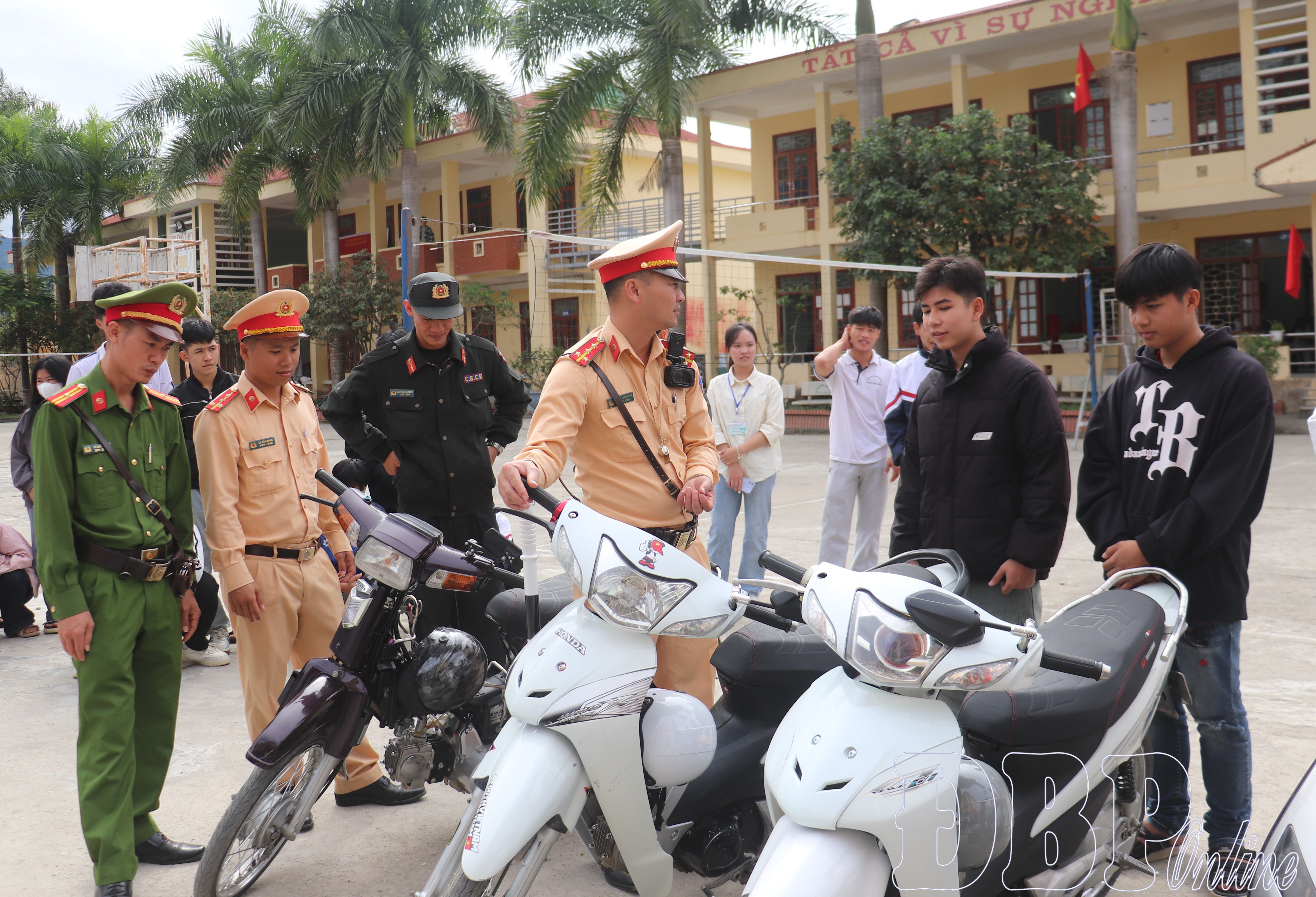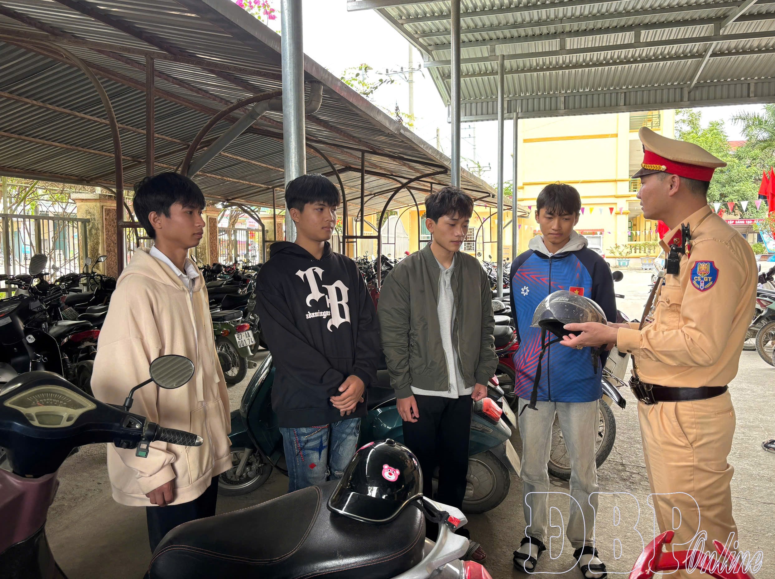 Lực lượng Cảnh sát giao thông đã kiểm tra bãi đỗ xe trong khuôn viên và khu vực xung quanh trường; kiểm tra độ tuổi của học sinh khi điều khiển phương tiện, việc đội mũ bảo hiểm đạt chuẩn. Đồng thời tuyên truyền, nhắc nhở học sinh chấp hành nghiêm các quy định của Luật Trật tự an toàn giao thông đường bộ. Qua đó nhằm nâng cao nhận thức, hình thành thói quen tự giác chấp hành luật, góp phần xây dựng văn hóa giao thông an toàn trong học đường.