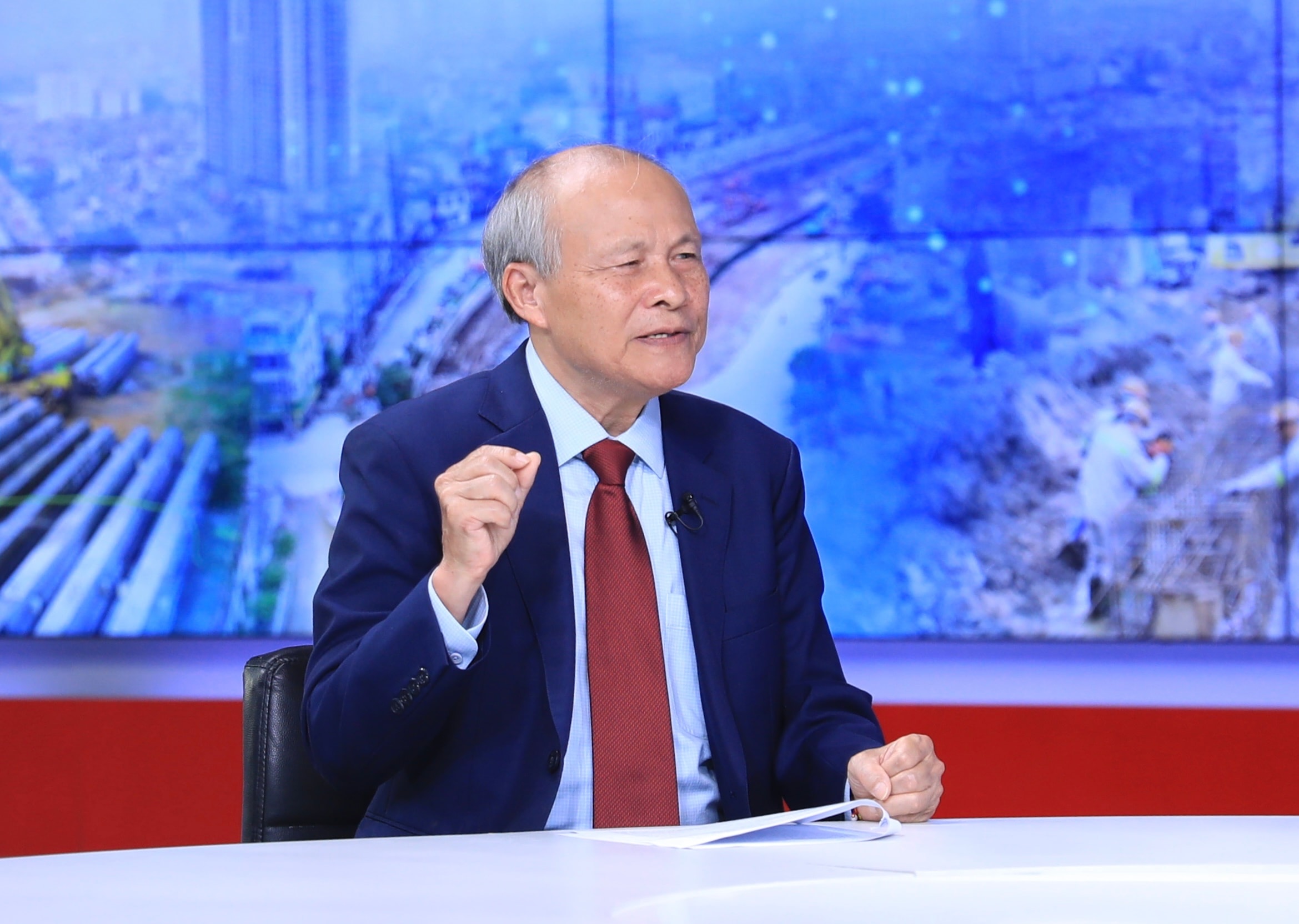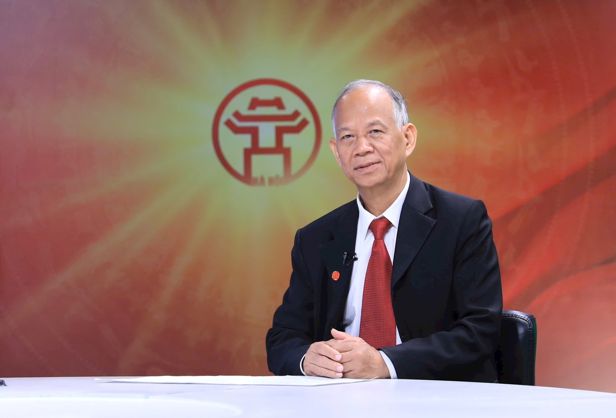 PGS.TS Trần Viết Lưu, nguyên Vụ trưởng Vụ Tổng hợp, Ban Tuyên giáo Trung ương (nay là Ban Tuyên giáo và Dân vận Trung ương) chia sẻ tại chương trình thời sự của Cơ quan Báo và Phát thanh, Truyền hình Hà Nội. Ảnh: Quang Thái