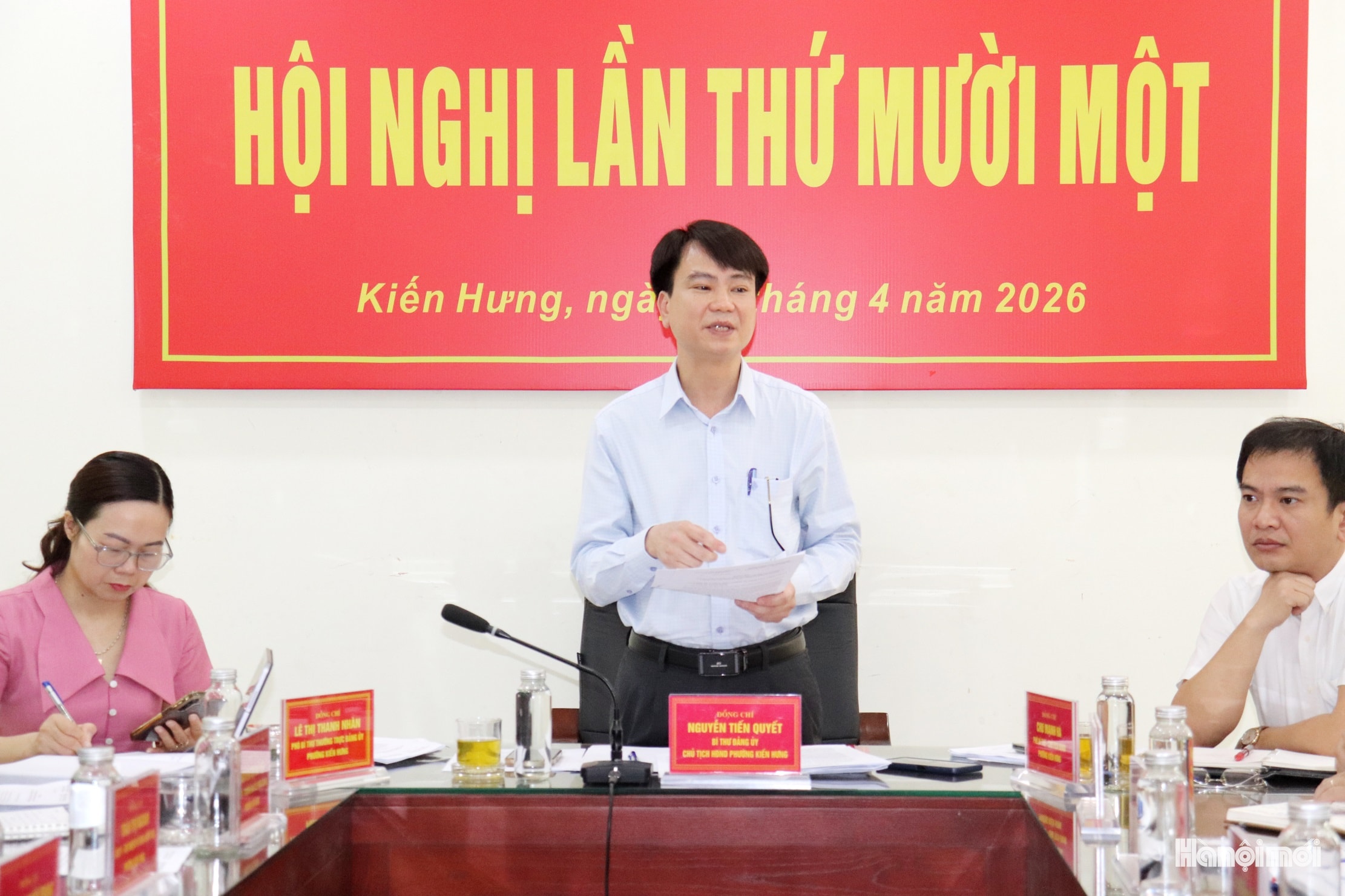 Đồng chí Nguyễn Tiến Quyết, Bí thư Đảng ủy, Chủ tịch HĐND phường phát biểu kết luận hội nghị. Ảnh: Tuấn Điệp
