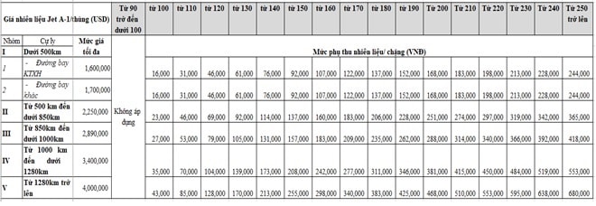 Mức phụ thu nhiên liệu đề xuất
