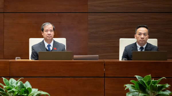 Bộ trưởng Bộ Giáo dục và Đào tạo Nguyễn Kim Sơn lắng nghe ý kiến đại biểu Quốc hội.