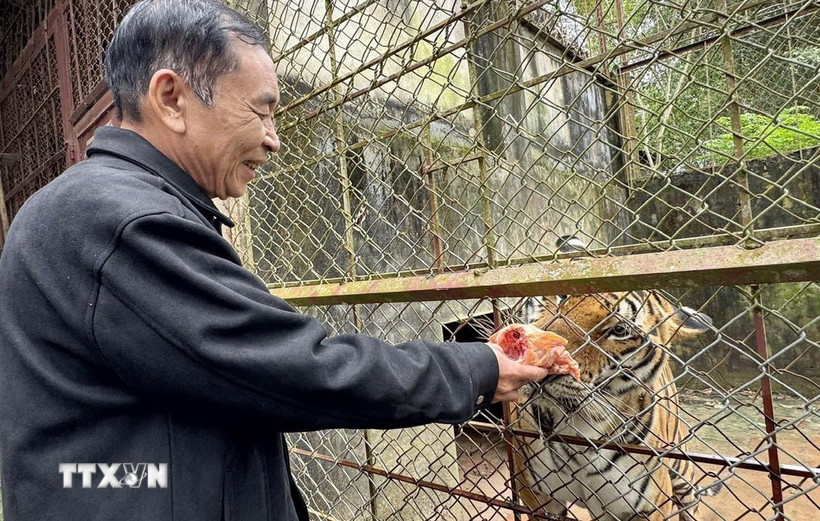 Ông Trịnh Đình Bạch là người quản lý, chăm sóc đàn hổ nhiều năm nay rất buồn khi phải chuyển giao cho đơn vị khác nuôi. (Ảnh: Việt Hoàng/TTXVN)