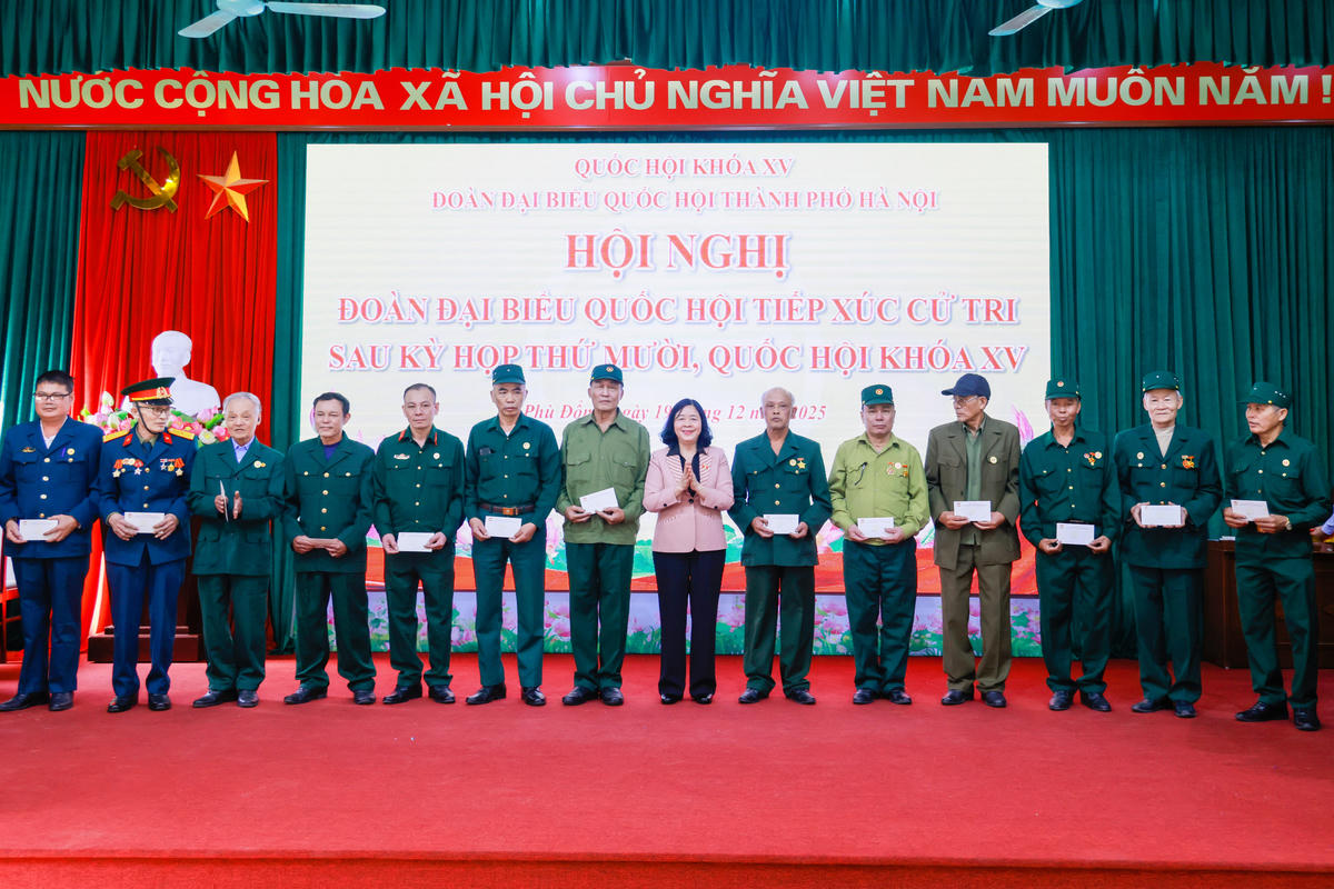 Tại Hội nghị, nhân dịp kỷ niệm 81 năm Ngày thành lập Quân đội nhân dân Việt Nam (22/12/1944 – 22/12/2025) và Tết Nguyên đán Bính Ngọ 2026 đang đến gần, Chủ tịch Bùi Thị Minh Hoài đã tặng quà cho 50 cựu chiến binh của 4 xã Phù Đổng, Bát Tràng, Gia Lâm, Thuận An.