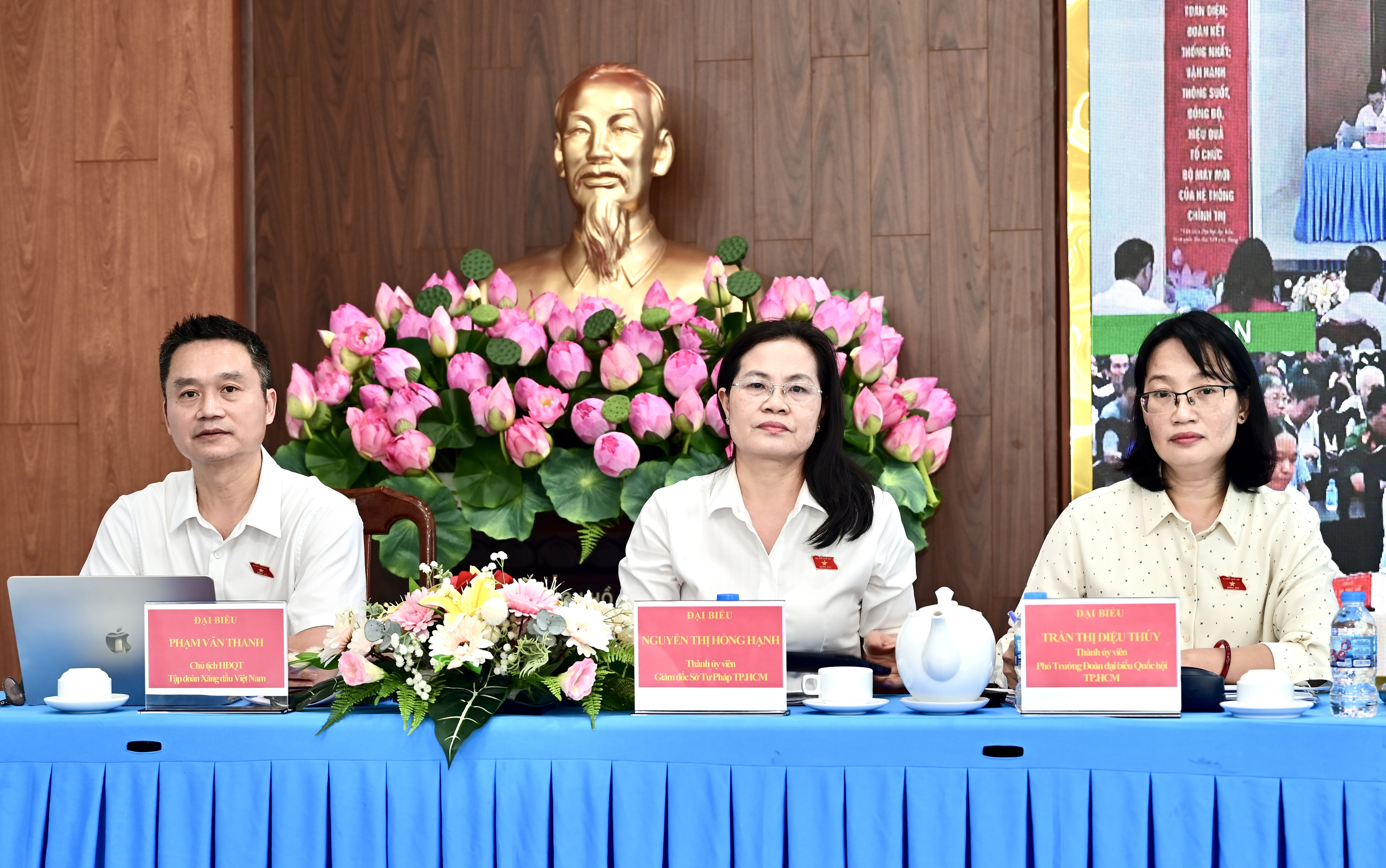 ĐBQH TPHCM đơn vị bầu cử số 10 gồm các đại biểu: Trần Thị Diệu Thúy, Phó Trưởng đoàn chuyên trách Đoàn ĐBQH TPHCM; Nguyễn Thị Hồng Hạnh, Giám đốc Sở Tư pháp TPHCM; Phạm Văn Thanh, Chủ tịch HĐQT Tập đoàn xăng dầu Việt Nam.