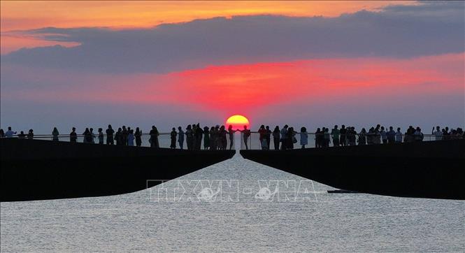 Du khách ngắm hoàng hôn trên Cầu Hôn, đặc khu Phú Quốc (An Giang). Ảnh: TTXVN phát