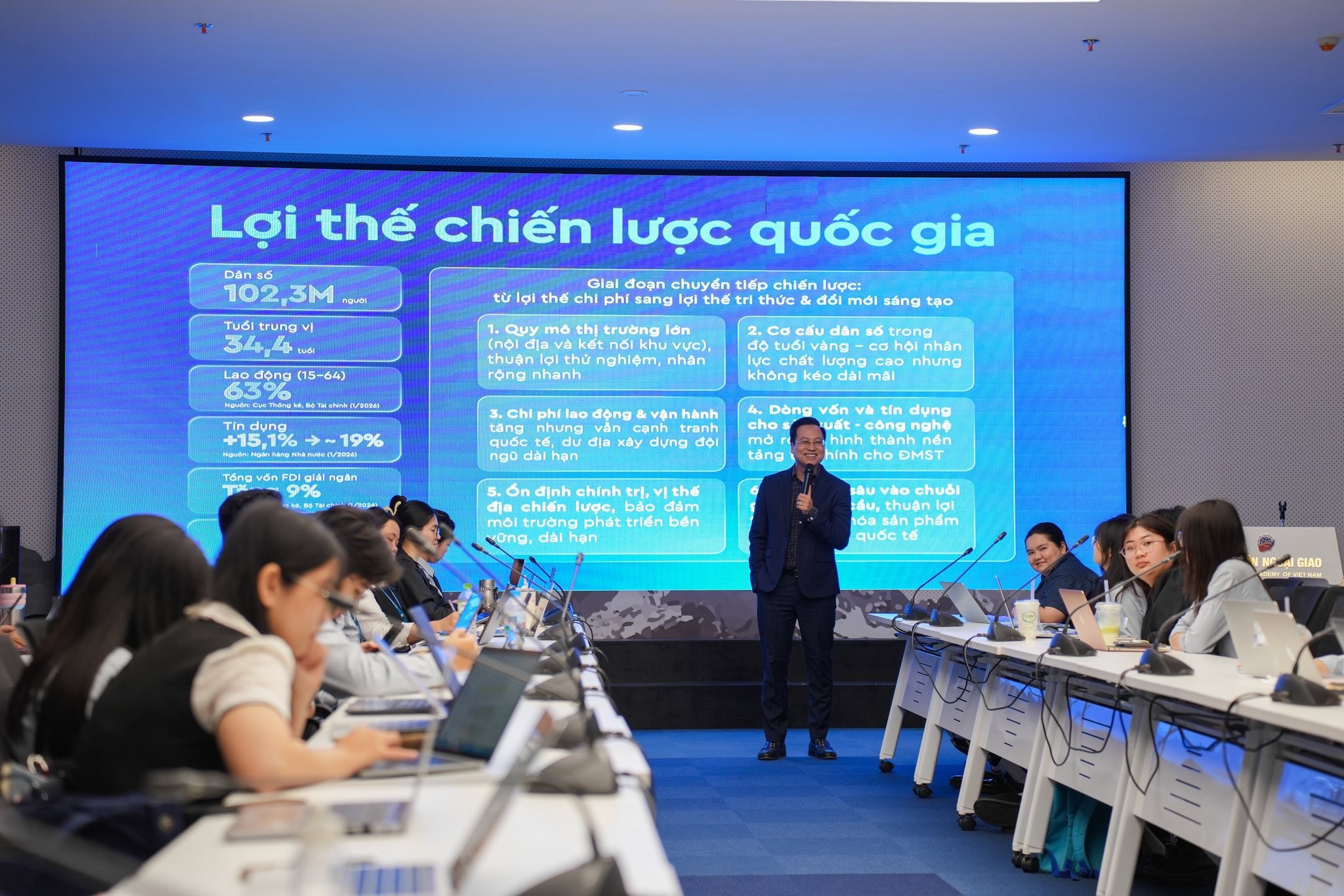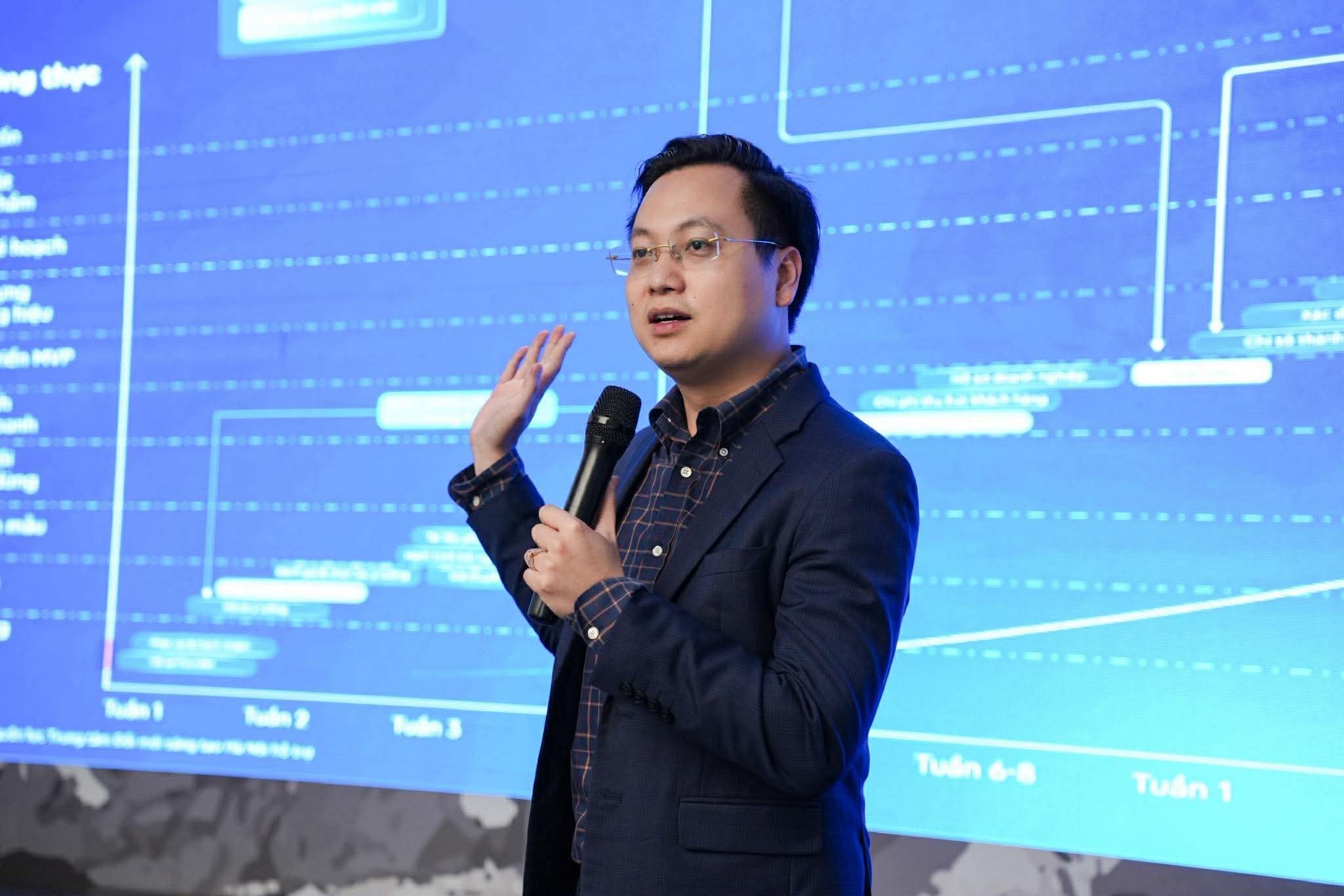 Chủ tịch HiHUB Trần Quang Hưng chia sẻ góc nhìn về hệ sinh thái khởi nghiệp sáng tạo tại Học viện Ngoại giao ngày 16-4-2026. Ảnh PV