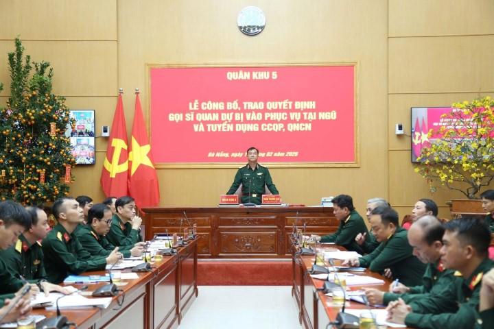 Quân khu tổ chức Lễ công bố, trao quyết định gọi sĩ quan dự bị vào phục vụ tại ngũ và tuyển dụng công chức quốc phòng, quân nhân chuyên nghiệp đối với Ban Chỉ huy Quân sự cấp xã. Hội nghị được tổ chức trực tuyến từ điểm cầu Quân khu đến các đơn vị, địa phương trên toàn địa bàn.