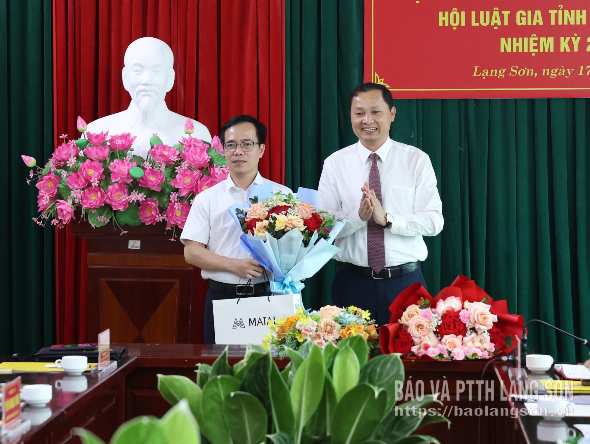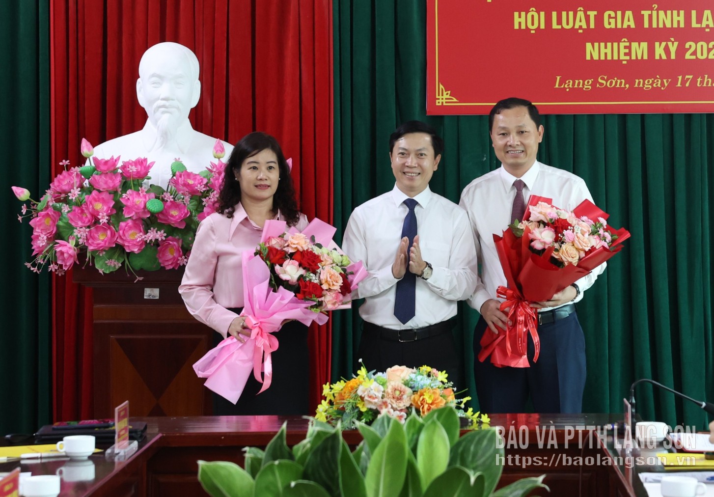 Lãnh đạo Ủy ban MTTQ Việt Nam tỉnh tặng hoa chúc mừng Chủ tịch, Phó Chủ tịch Hội Luật gia tỉnh