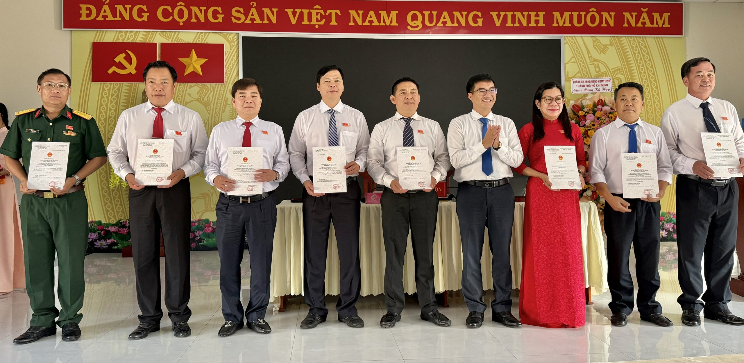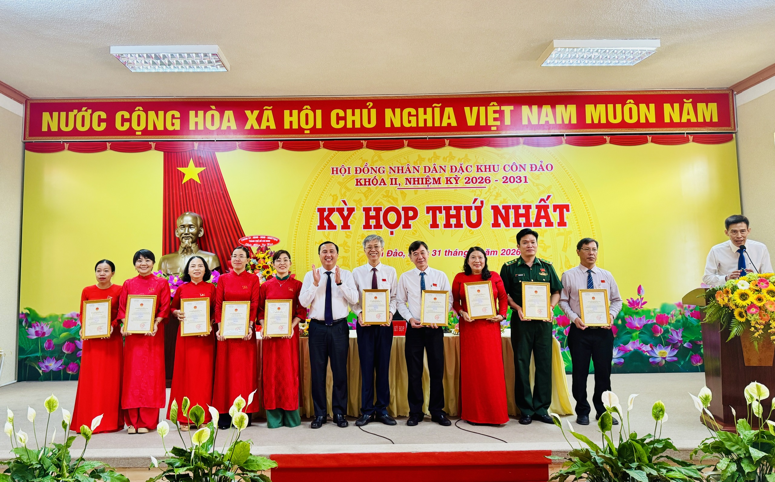 Lãnh đạo đặc khu Côn Đảo trao giấy chứng nhận cho các đại biểu HĐND đặc khu Côn Đảo khóa II, nhiệm kỳ 2026 – 2031