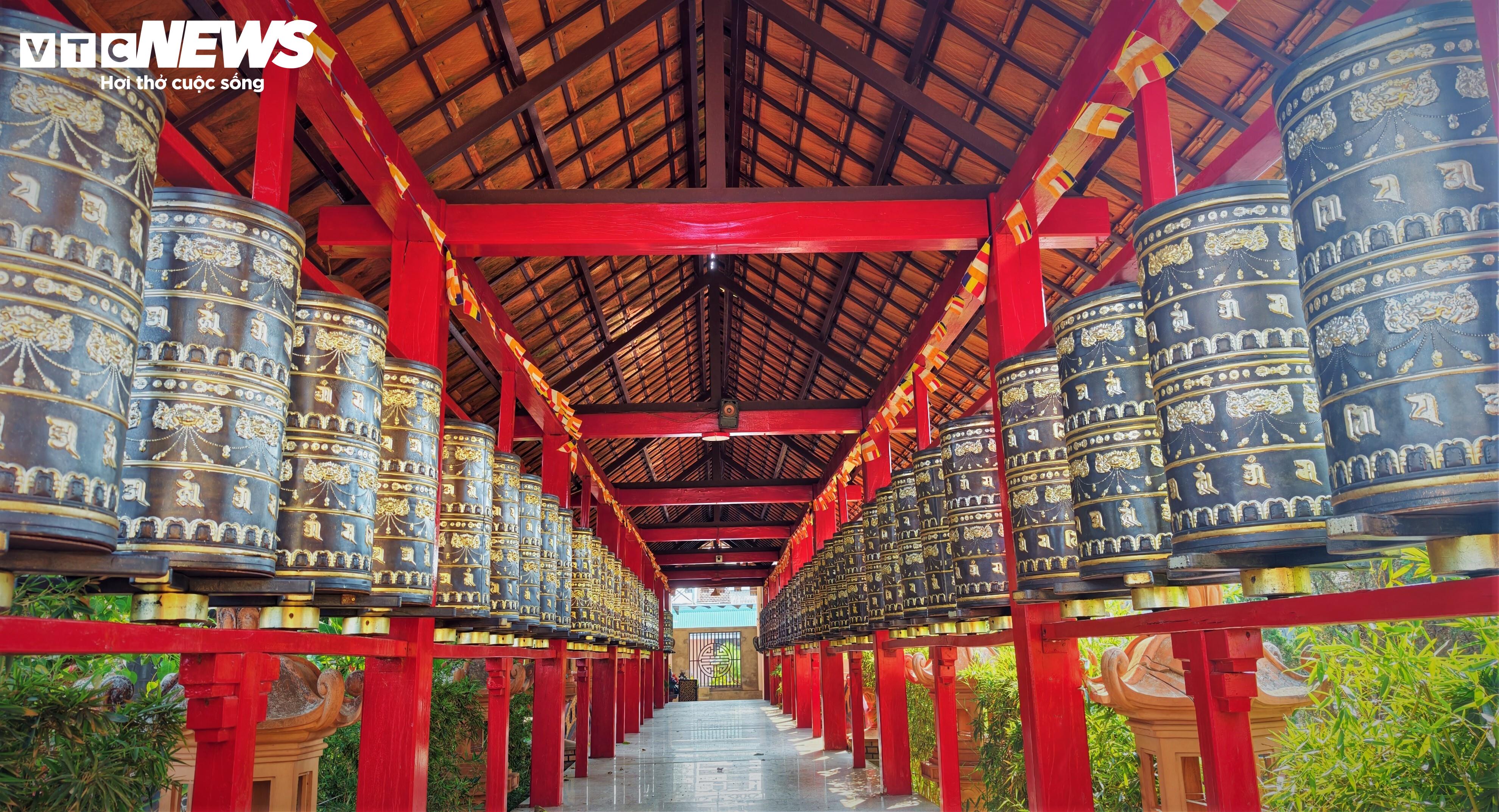 Điểm nhấn nổi bật khác tại chùa Bửu Minh là hệ thống 63 trụ kinh luân (1 trụ lớn và 62 trụ nhỏ) thay vì các loại chuông đúc truyền thống. Các trụ kinh luân được làm bằng đồng, chạm khắc tinh xảo, có thể đi quanh và quay các trụ để cầu bình an, tạo nên không gian tâm linh trang nghiêm, độc đáo.