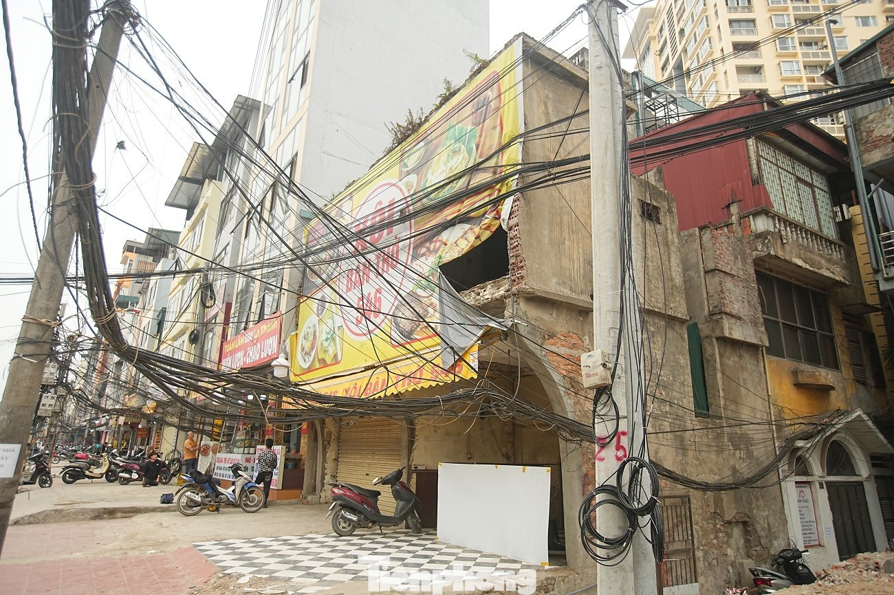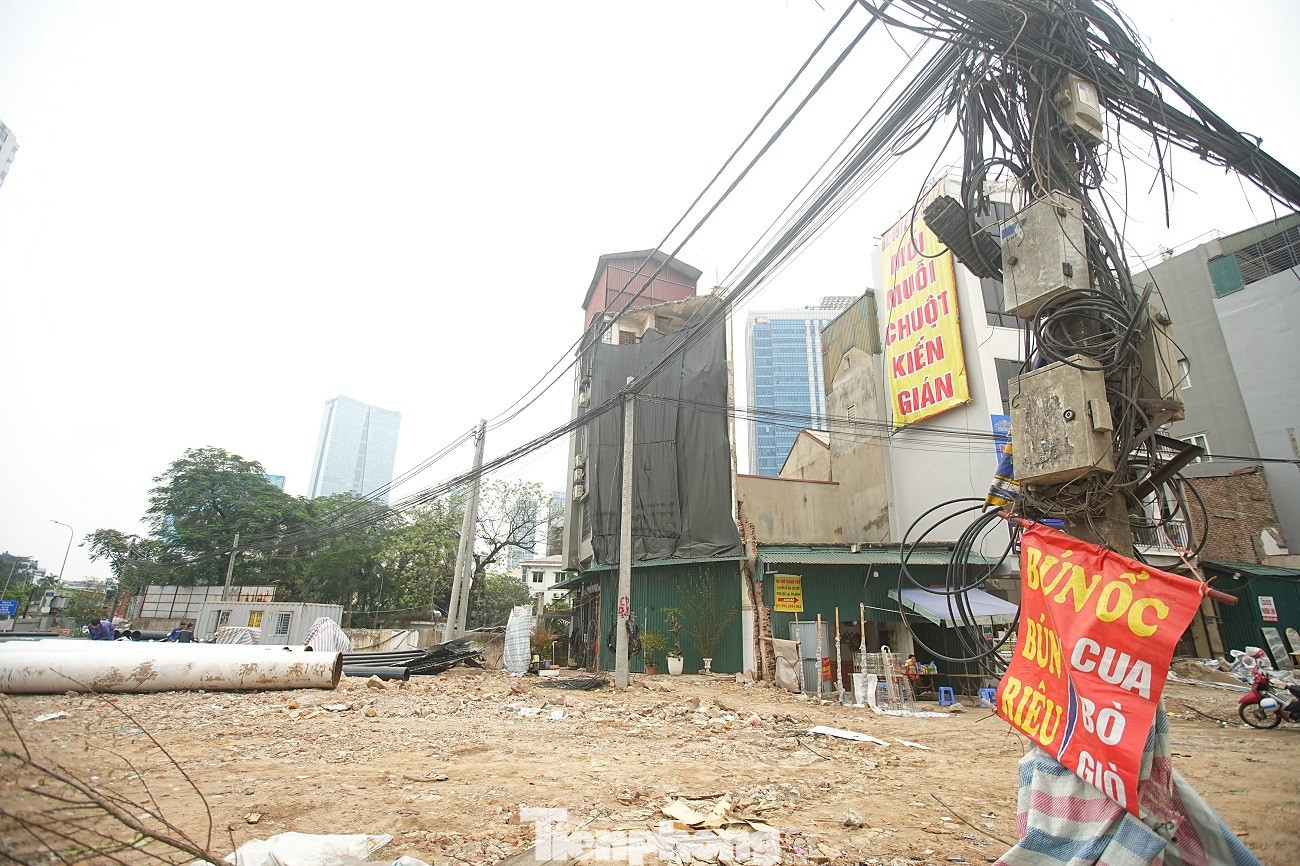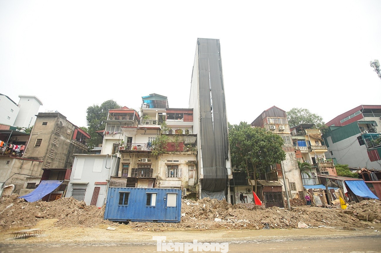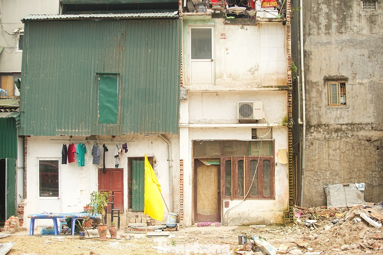 Việc giải phóng mặt bằng làm lộ ra những dãy nhà cũ thuộc khu tập thể Thành Công nằm sát ngay mặt đường lớn.