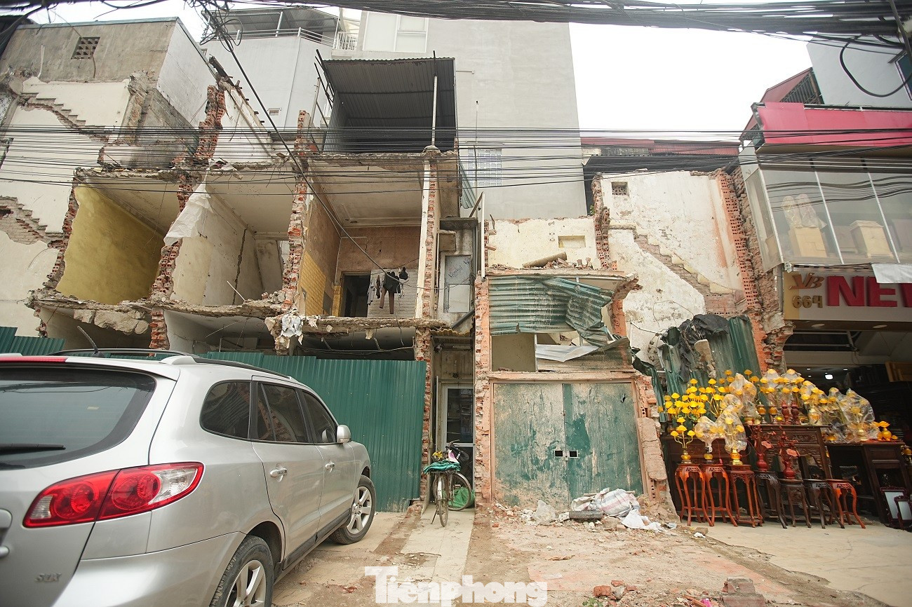 Nhiều căn nhà bị cắt xén phần mặt tiền, gạch vữa ngổn ngang do chủ nhà chưa kịp tu sửa.