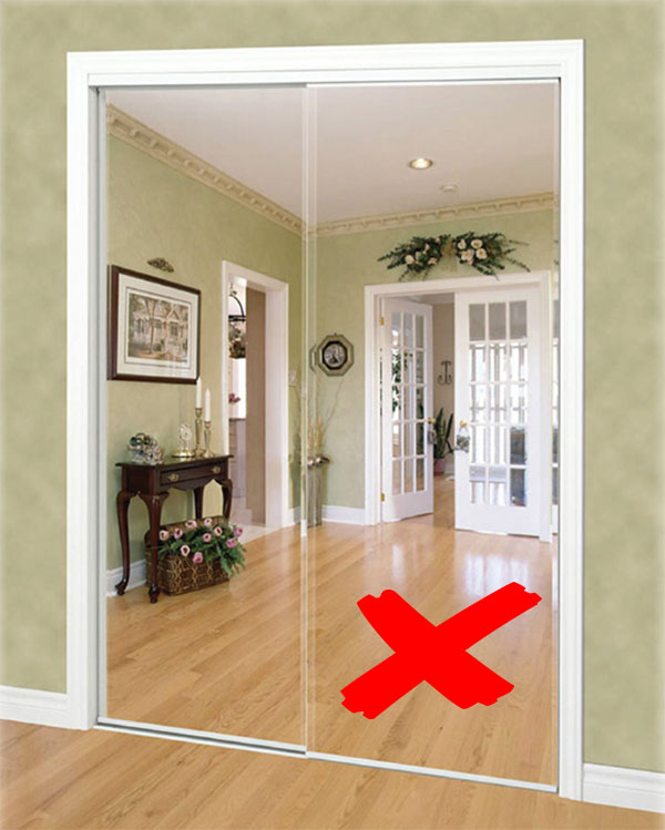Theo phong thủy, treo gương đối diện với cửa ra vào (cửa chính) có thể ngăn chặn, xua đuổi Thần tài đến nhà, sức khỏe giảm sút.