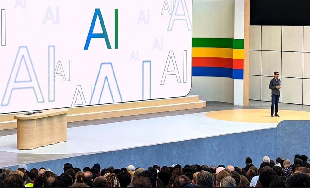 CEO Google Sundar Pichai đề cập đến AI trong hội nghị tháng 5.2024 tại Mountain View, California, Mỹ. Ảnh: Glenn Chapman