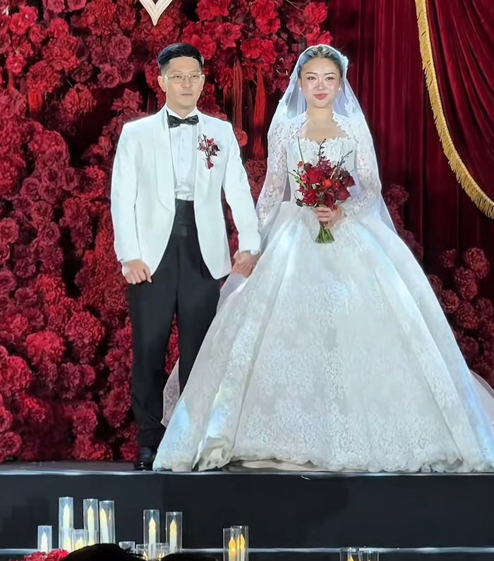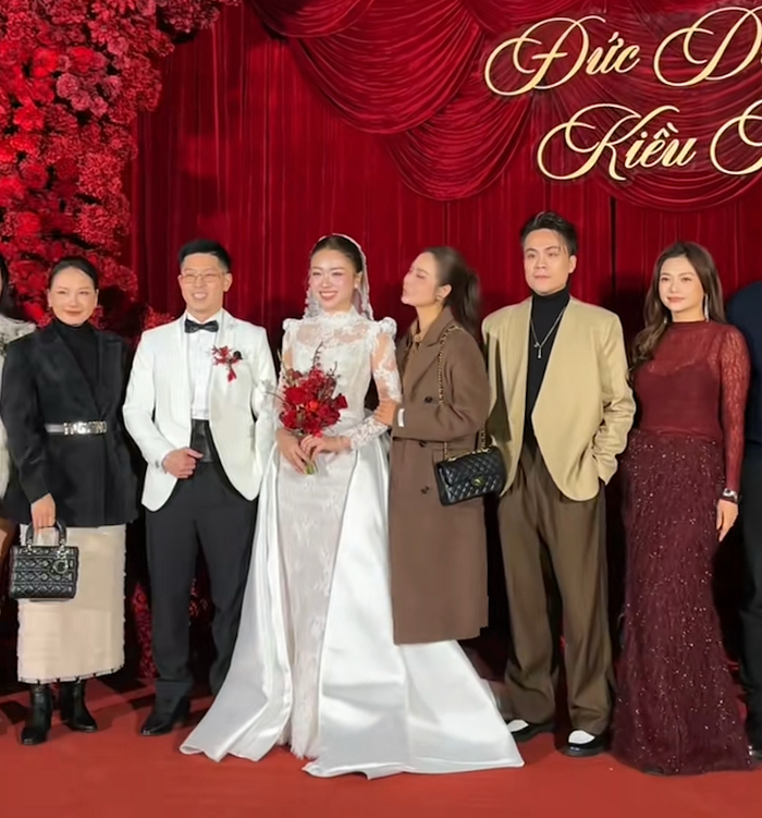 Trong không gian được bài trí tinh tế, Kiều My và Đức Duy xuất hiện với trang phục cưới chỉn chu. Cả hai không giấu được sự xúc động khi cùng nhau thực hiện các nghi thức quan trọng của hôn lễ.