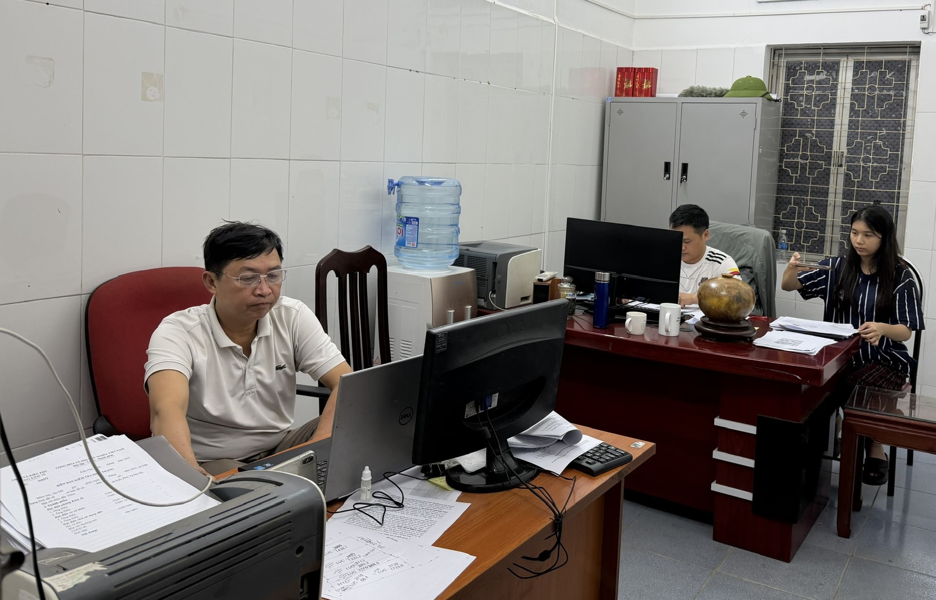 Cán bộ Phòng Kinh tế xã Kiều Phú được tăng cường làm thêm vào buổi tối để đẩy nhanh tiến độ triển khai chiến dịch. Ảnh: Trần Hùng