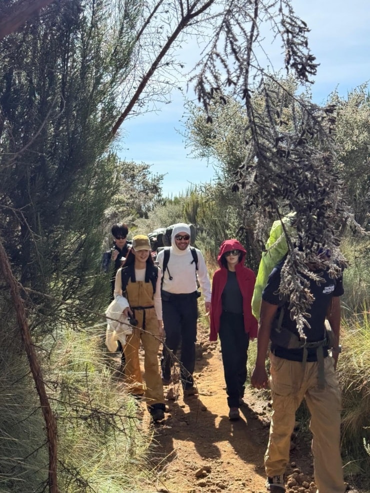 Có nhiều con đường để chạm tay vào nóc nhà châu Phi, nhưng nhóm của Lee Si Young đã lựa chọn Marangu. Đây là cung đường phổ biến nhất nhờ độ dốc vừa phải, thời gian di chuyển ngắn và có hệ thống lán trại nghỉ chân được trang bị điện, thay vì phải ngủ lều. Điểm dừng chân tiêu biểu là Mandara Hut ở độ cao 2.720 m.