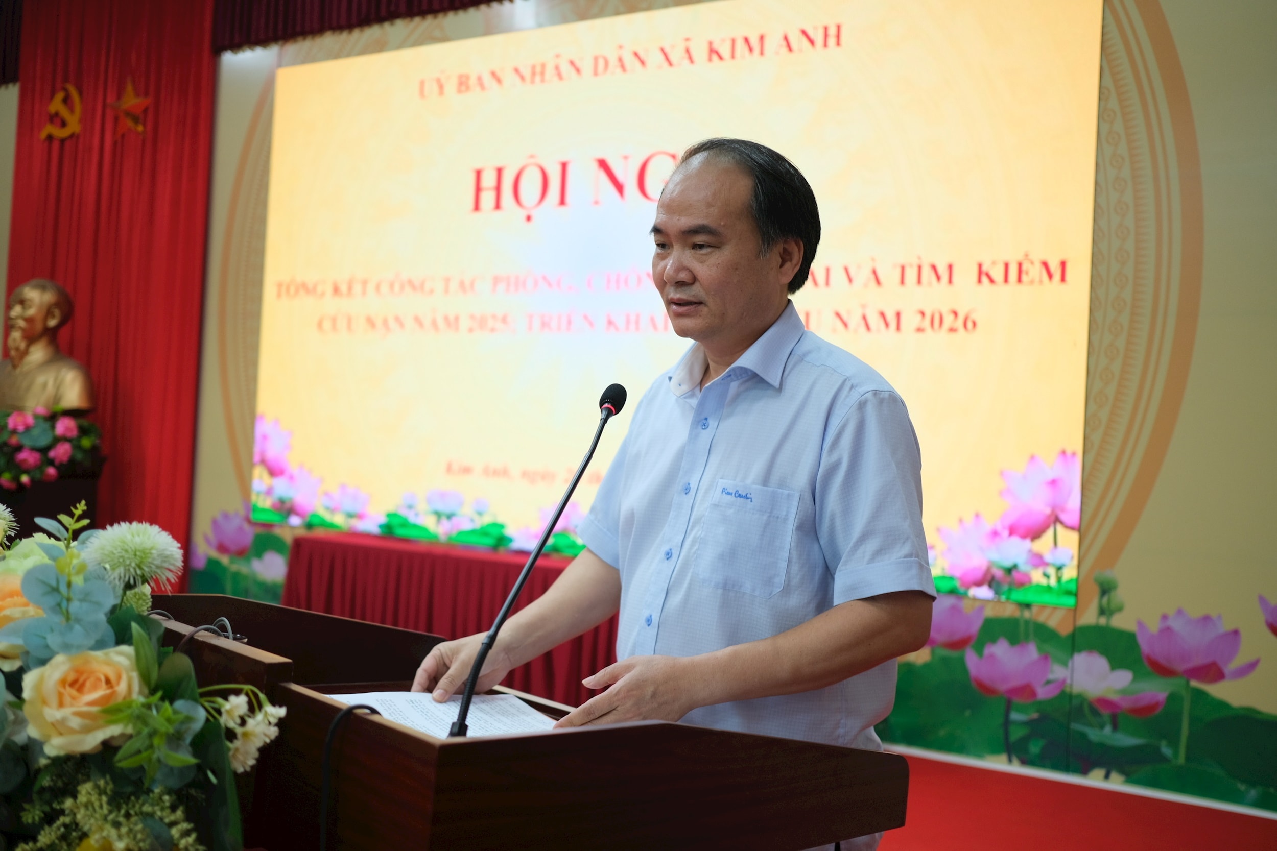 Phó Chủ tịch UBND xã Kim Anh Nguyễn Văn Toàn thông tin về kết quả công tác phòng chống thiên tai tìm kiếm nạn trên địa bàn xã Kim Anh năm 2025. Ảnh: Sỹ Hào